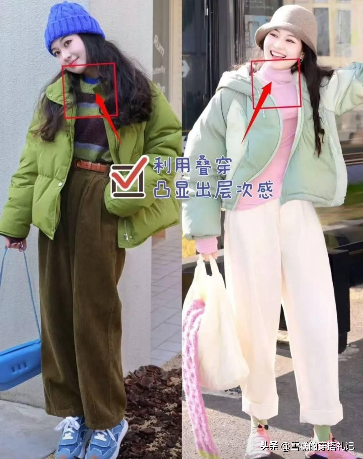之所以羽絨服要選寬鬆款,就是要爲內搭預留空間,即便是玩轉“三明治疊穿法”,也完全不用擔心會顯臃腫。