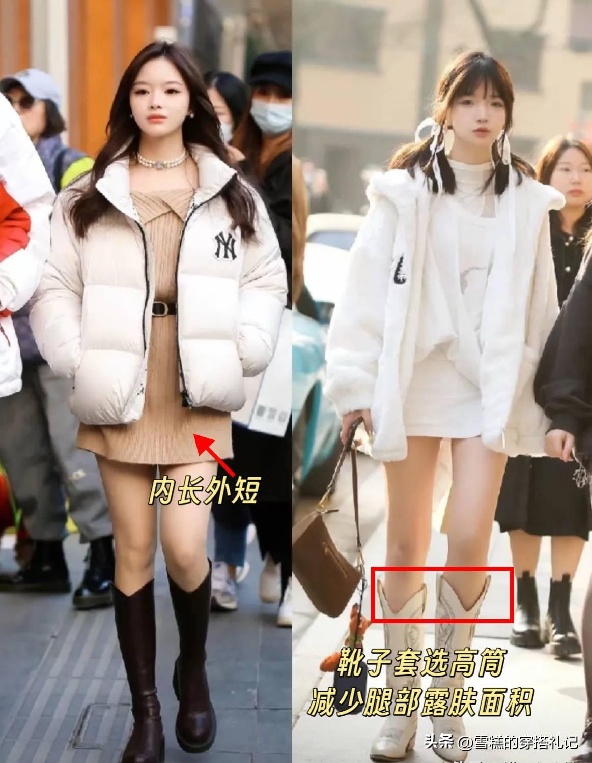 冬天穿羽絨服,不要只知道配長褲、長裙,其實“下衣失蹤”的穿法,纔是經久不衰的存在,可以在羽絨服裏面直接疊穿毛衣裙,“內長外短”的搭配更顯高。