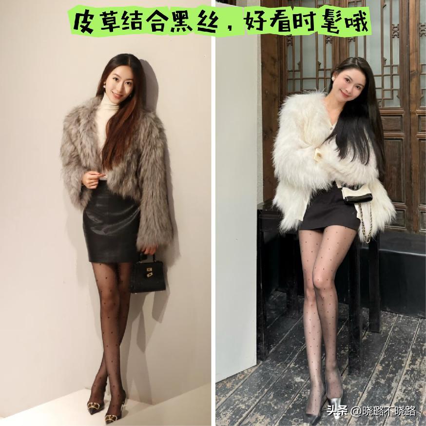 在每一年的冬季皮草這款經典型的外搭單品,總是要多多的運用一些露腿型的穿搭,比如結合經典,而且又有時髦感的黑絲系列,再搭配高跟鞋,真的是能夠將辣妹,而且很明顯的女性韻味給凸顯出來的,建議屏幕前各位年輕的女性都可以多多的嘗試一些。