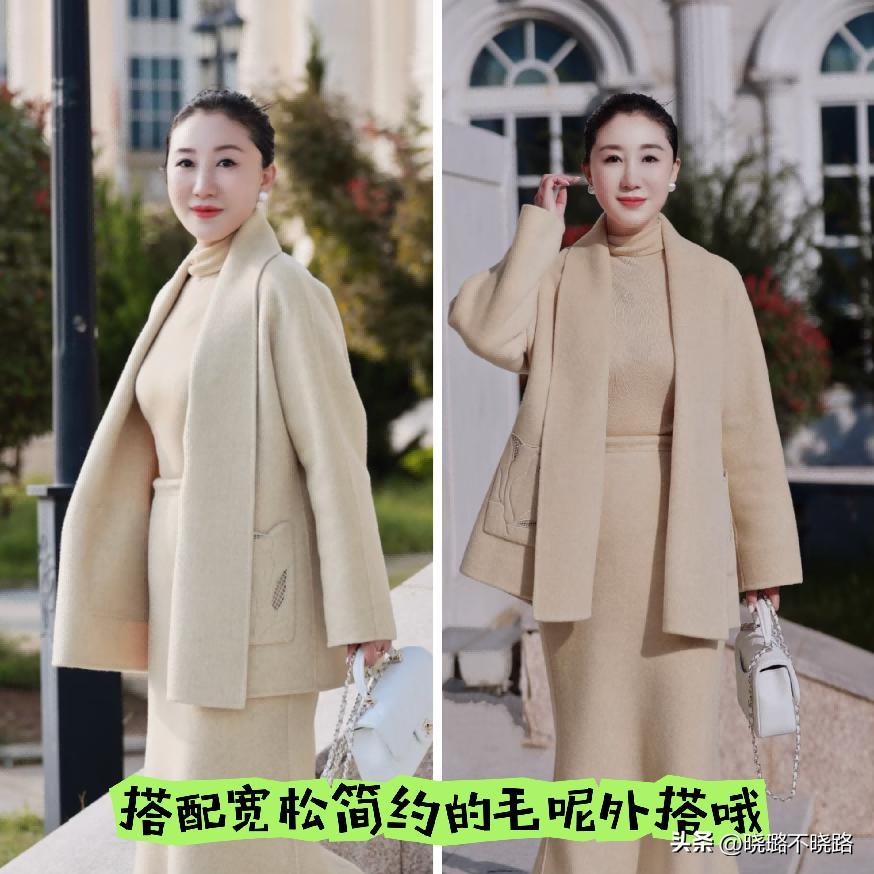 毛呢外搭是屬於寬鬆型的設計,而且它的長度也剛剛遮擋住了臀胯的部位,所以在搭配下半部分單品的時候,第1點就推薦可以運用露腿型的穿搭,下身失蹤的搭配方式結合短靴或者長筒靴,更加的時髦減齡以及凸顯優雅感。第2種的話,下半部分,管是選擇褲子還是裙子,都優選運用長款的設計,更加能夠將溫柔和沉穩大氣的氣質狀態得以強調。