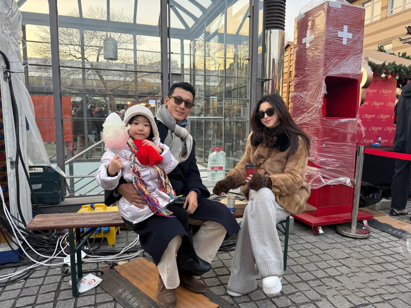 朱珠一家逛聖誕集市,她穿10年前皮草鬆弛貴氣,4歲珠寶臉圓可愛