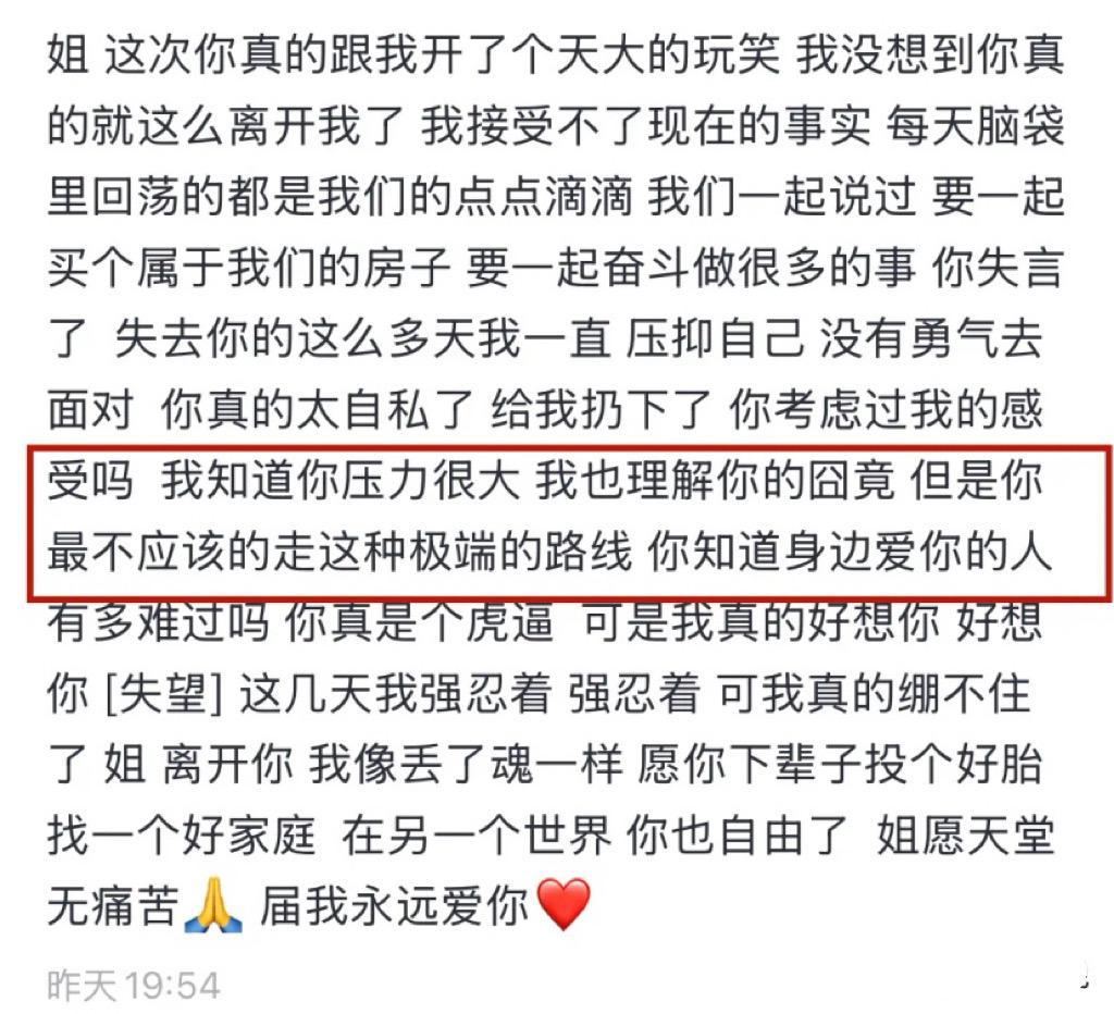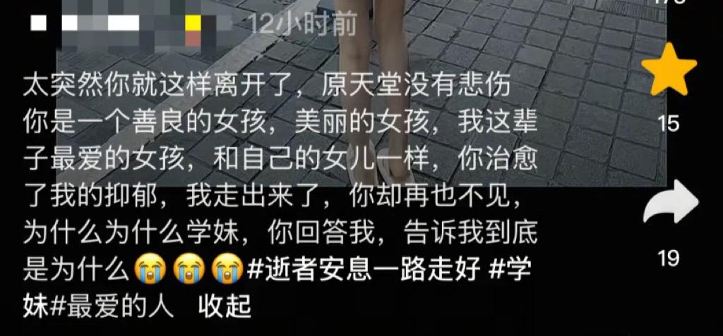 看到一位自稱“學妹”弟弟的網友髮長文表示:最不該做這種極端的選擇。也就是說學妹趨勢,是“有預謀”的。她也許是扛不住生活的壓力,實在撐不下去了。