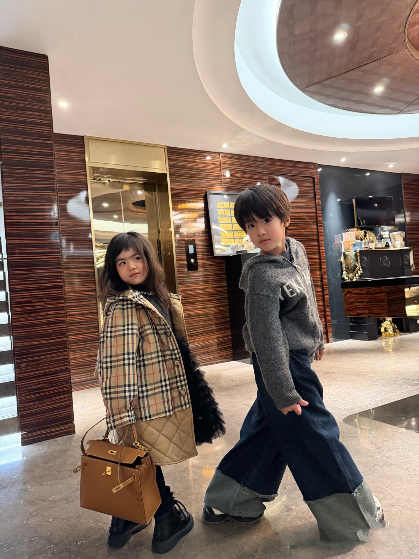 在姜潮最近的動態中,又一次曬出倆娃照片。6歲的達尼爾穿衛衣、闊腿褲,非常帥氣。大眼睛、皮膚白,就像是“迷你版”姜潮。