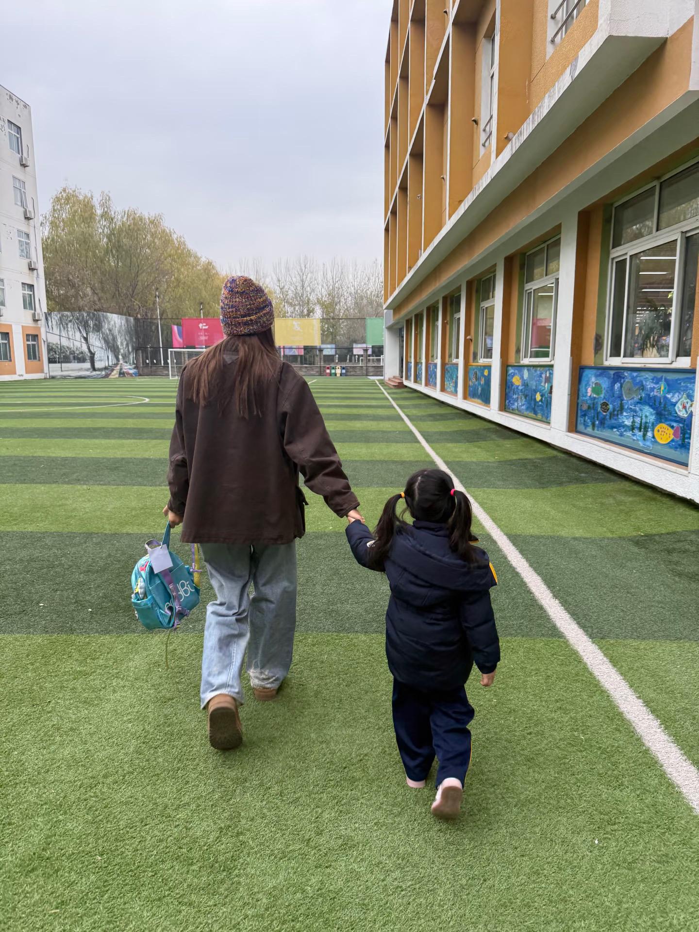 麥迪娜牽着小女兒的手一起散步,4歲的艾米麗身高很優越,目測已經快有一米二了。她扎着兩個馬尾辮,看背影都可可愛愛的。
