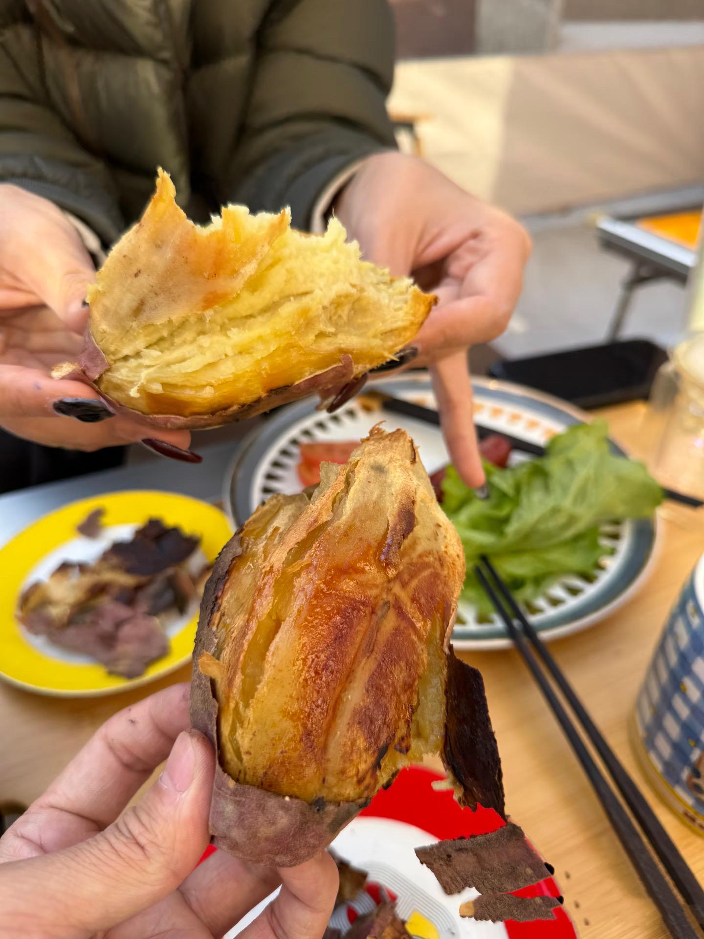 他們在家裏還烤了地瓜,這纔是冬天的儀式感呀。冬天就是要在家裏烤熱乎乎的地瓜,煮一杯暖茶,和親密的家人相擁。