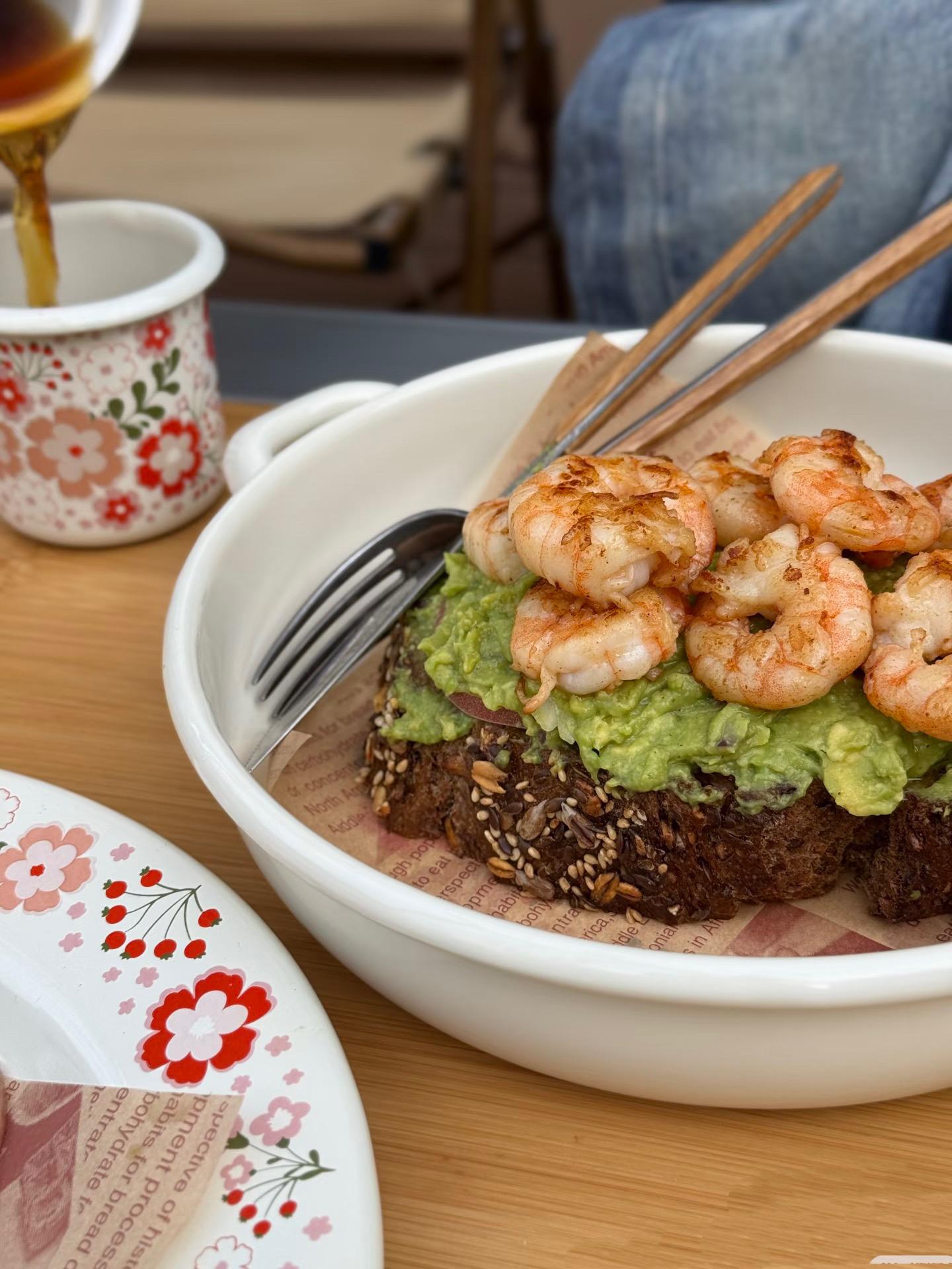 姜潮還會做牛油果三明治,爲心愛的人做早餐是最幸福的事情。她準備了蝦仁、生菜、牛肉,還有面包片,牛油果。這樣的早餐營養均衡也很可口,小孩子們也喜歡喫。