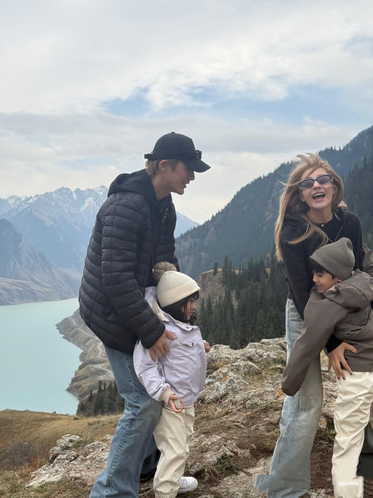 他們去了新疆伊犁,在那裏也留下了美好的記憶。每次出行一兒一女也是穿親子款的服裝,很有愛。