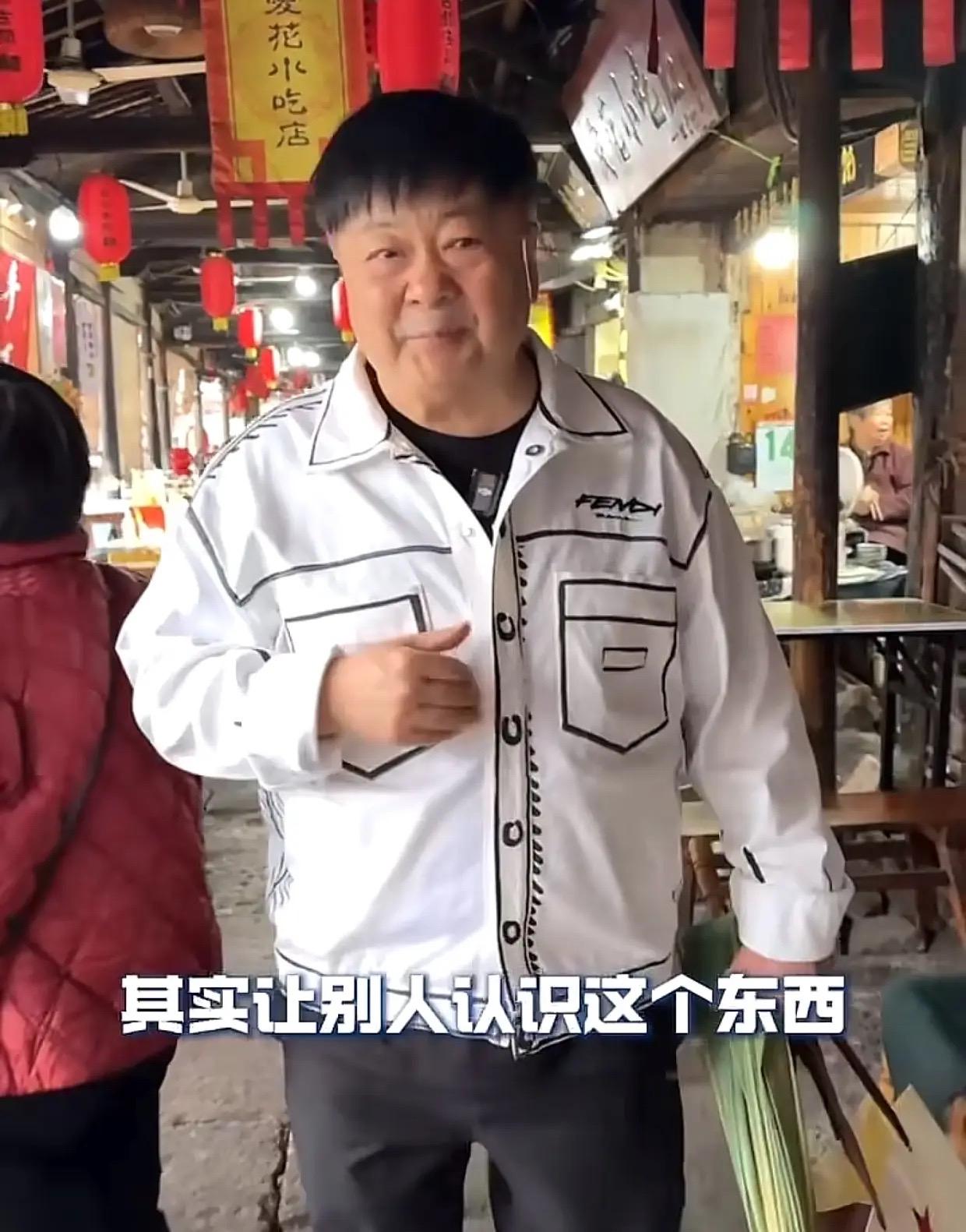 洪劍濤現身浙江紹興的安昌古鎮旅遊,自然要感受一下當地的民俗塔色。他手裏拿着油紙傘、手提袋裏還裝着紀念品,禮貌地詢問攤主能不能試戴則個帽子。