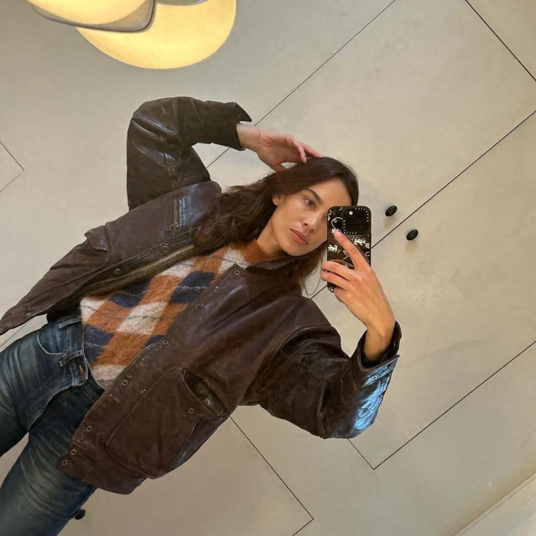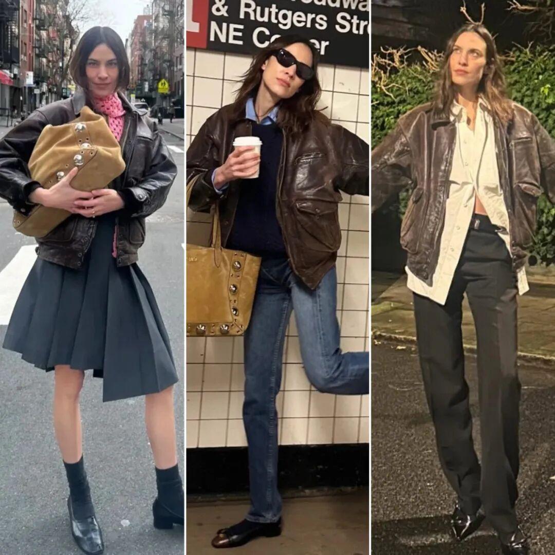 最近在ins刷圖,發現鍾小姐這幾個月來幾乎都在穿同一件vintage皮衣▼