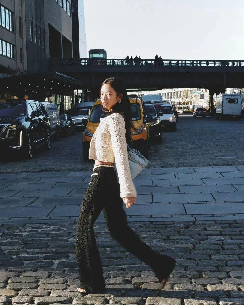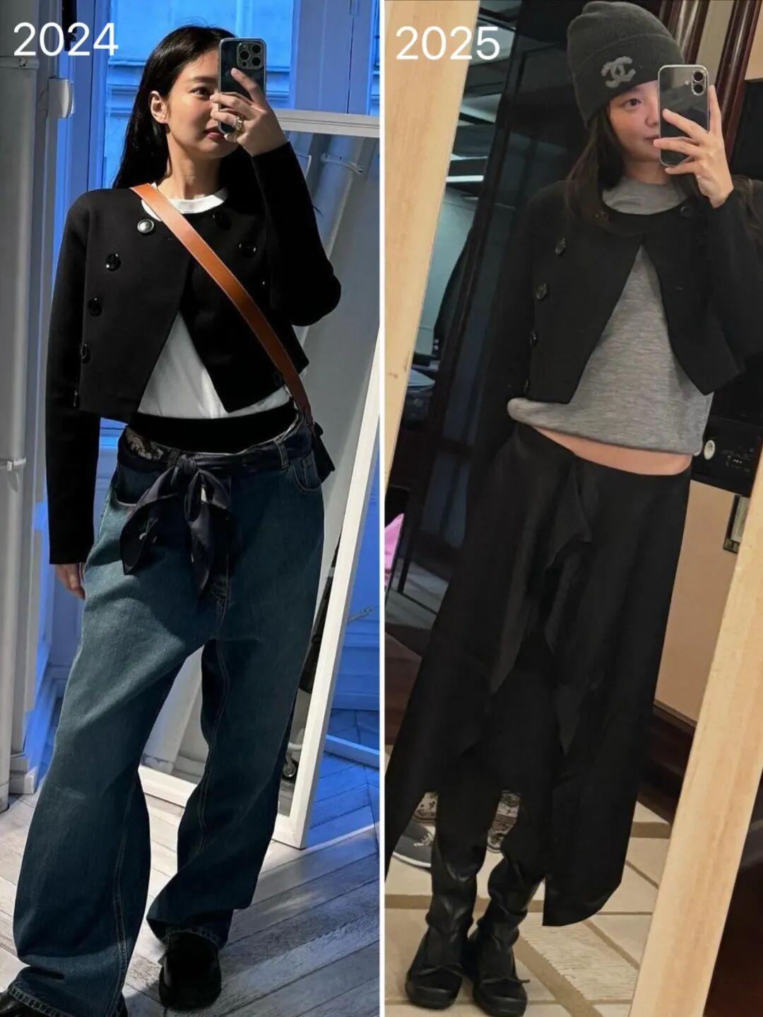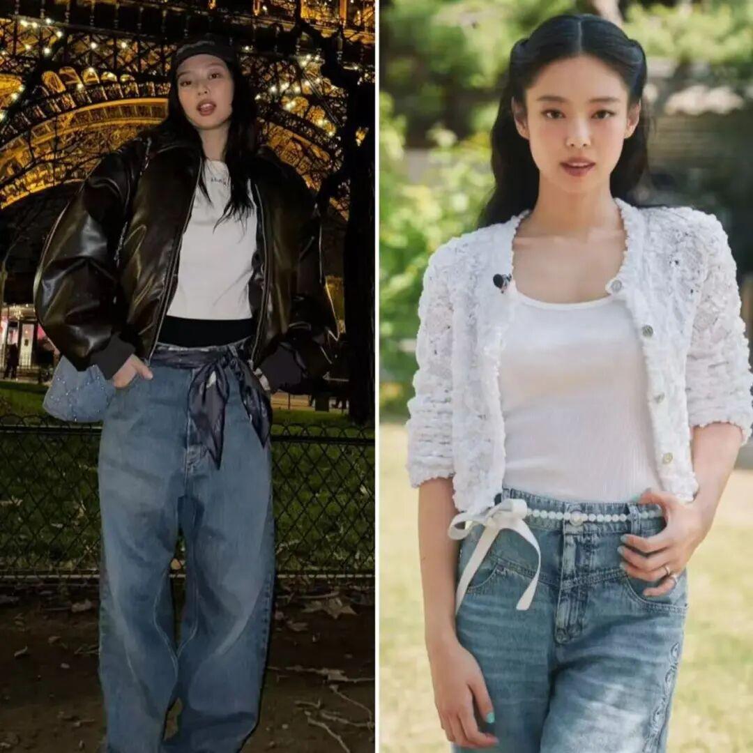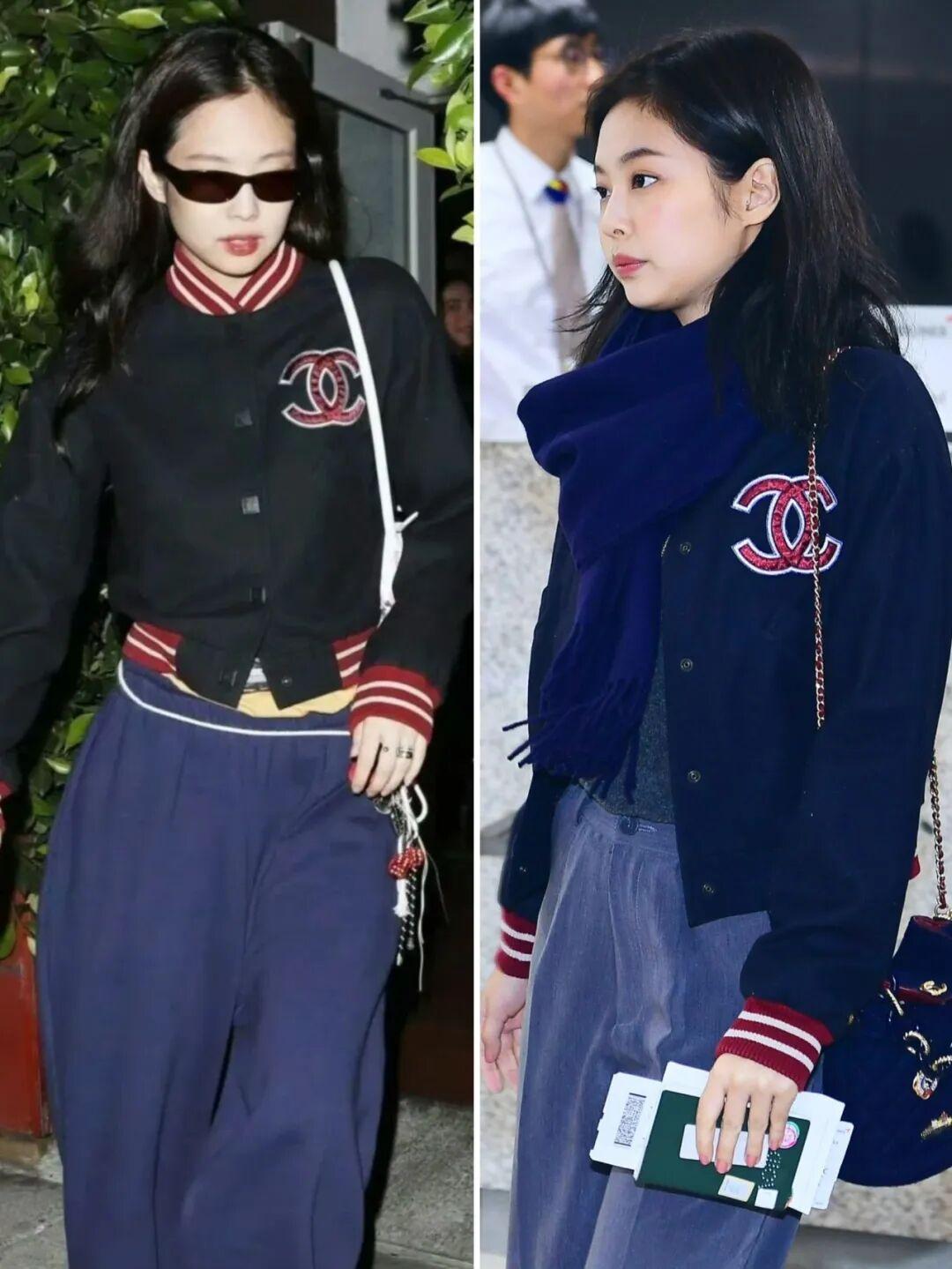 Jennie身高163cm左右,多數時候她的外套都愛選短款,整體更顯比例。