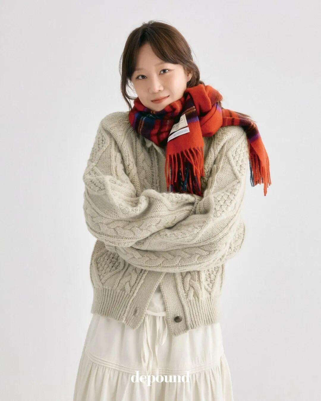 孔孝真爲 depound拍攝的新款目錄裏,也出現了幾款絞花毛衣,款式都很讓人種草,定價在1k左右。▼