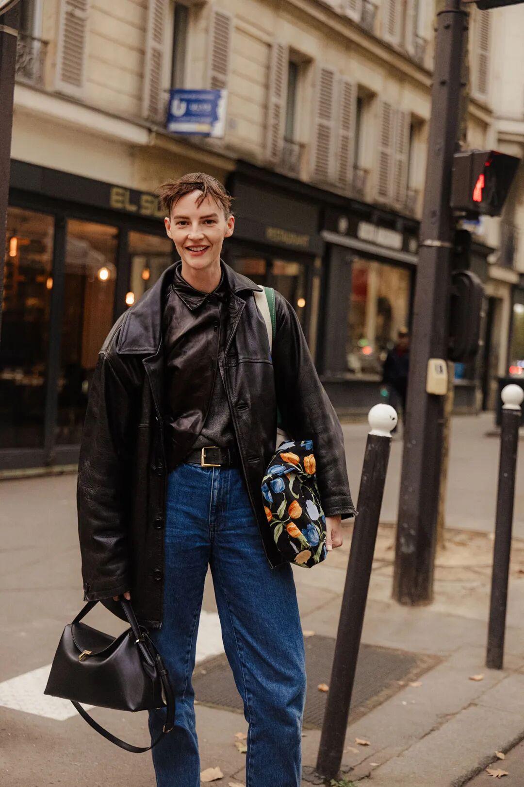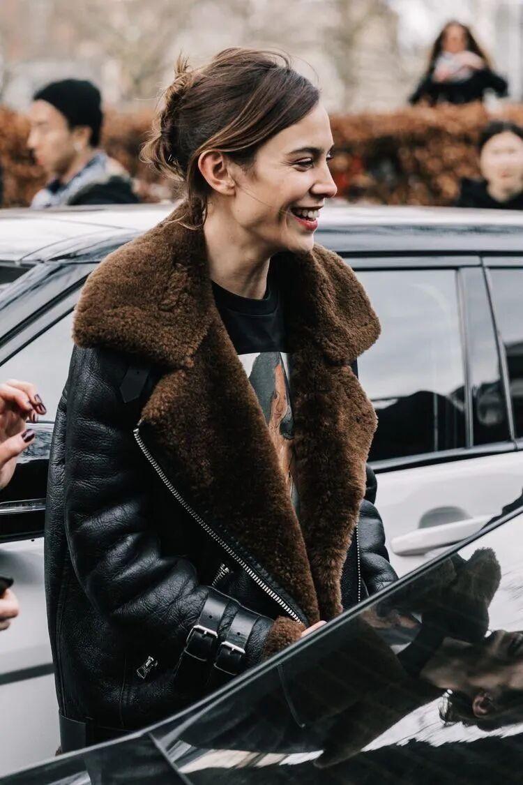 除了皮毛一體夾克外,Acne Studios的皮衣也很受歡迎,在街拍中常常會出現,皮衣控可以留意下。▼