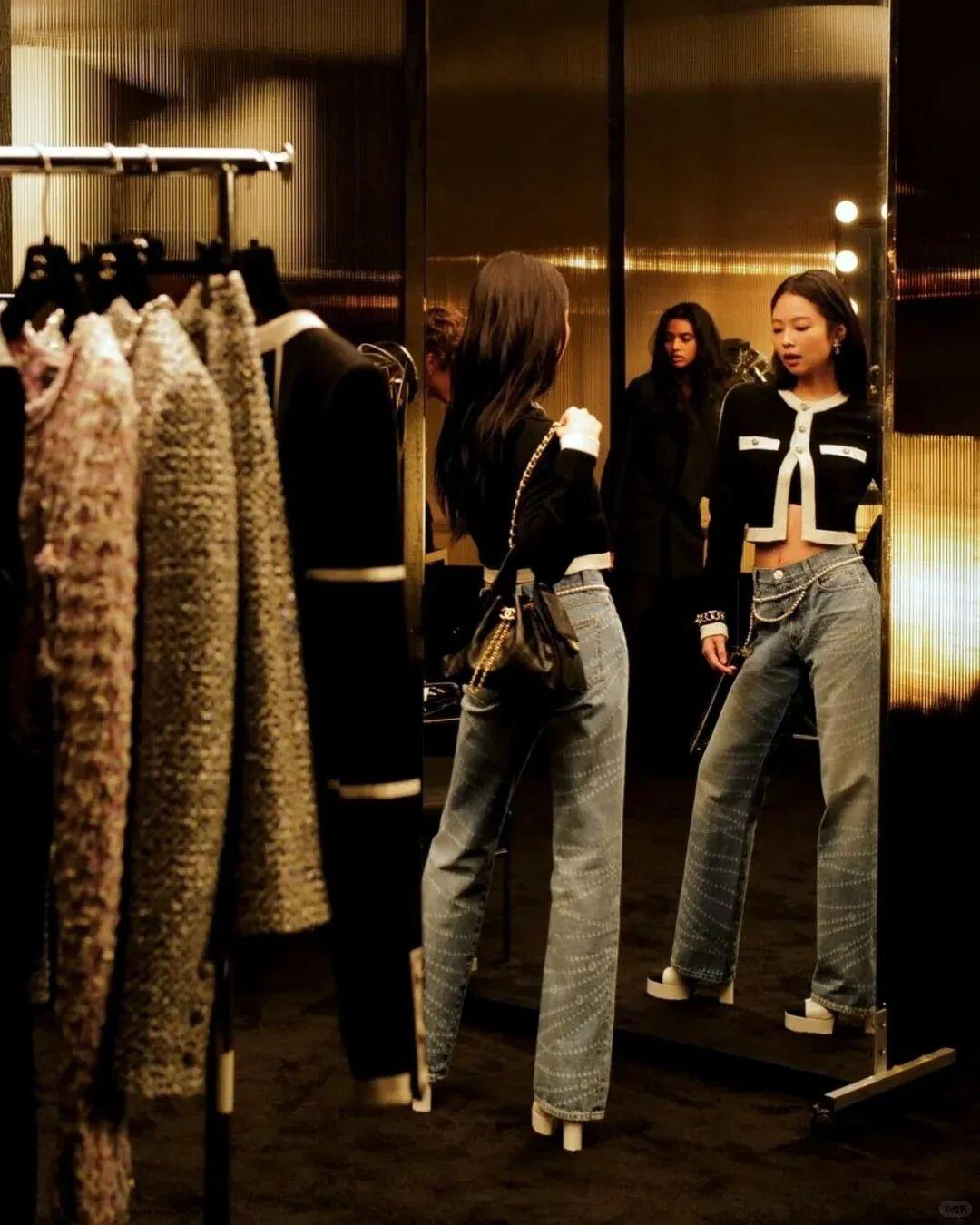 她會經常從媽媽衣櫥裏借衣服穿,上面這件Chanel 外套甚至是1995的款式,比Jennie還大一歲,說小時候抱過她都不爲過。▼