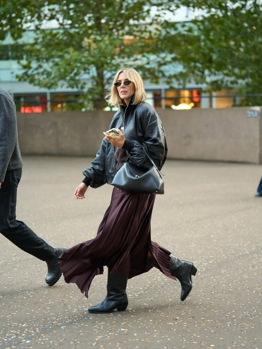 皮衣和切爾西靴的組合也是經典搭配了,搖滾味十足。▼