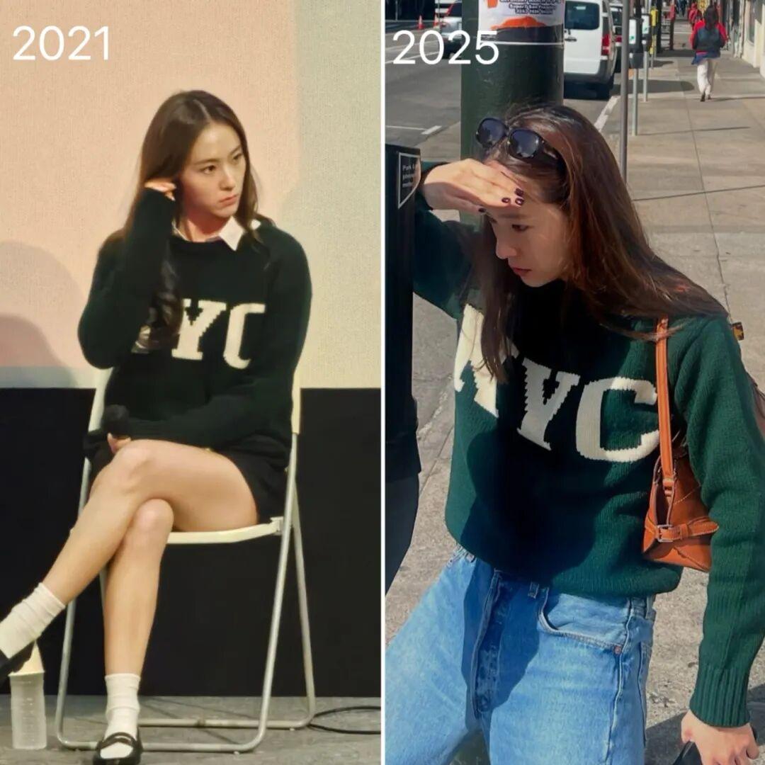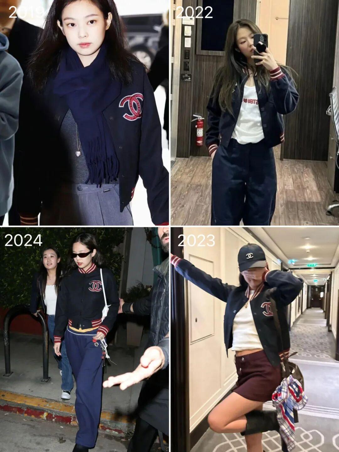 這件棒球外套她從2019年開始穿,到2024年的街拍還有露出,可以看出她真的特別喜歡了。▼