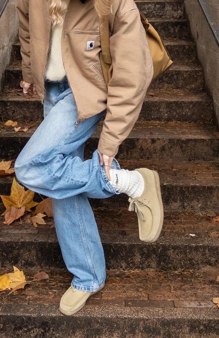 工裝外套+牛仔褲+袋鼠鞋的穿搭公式可以照抄,今年特別流行。▼
