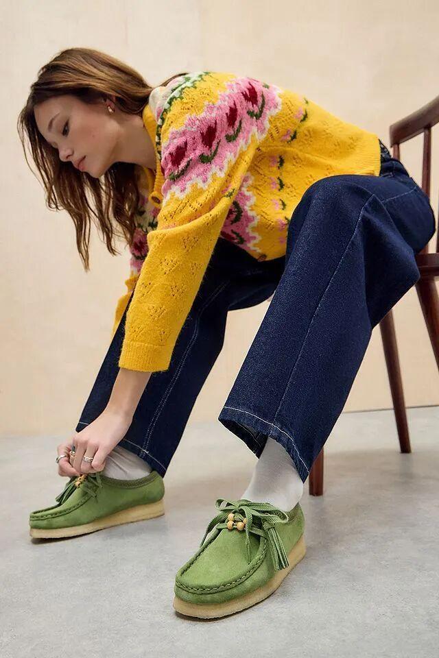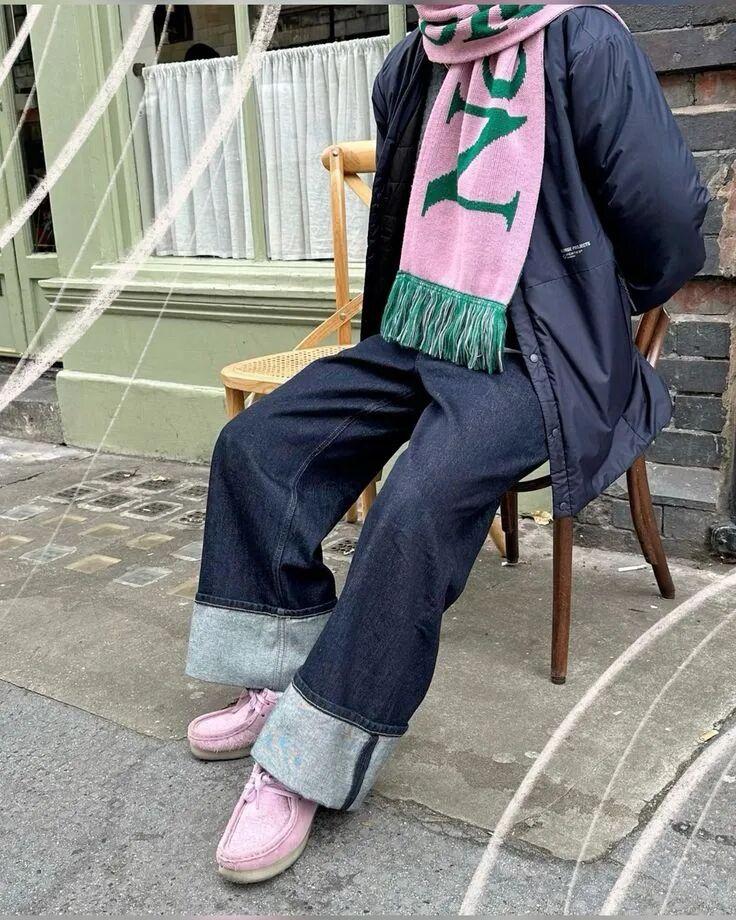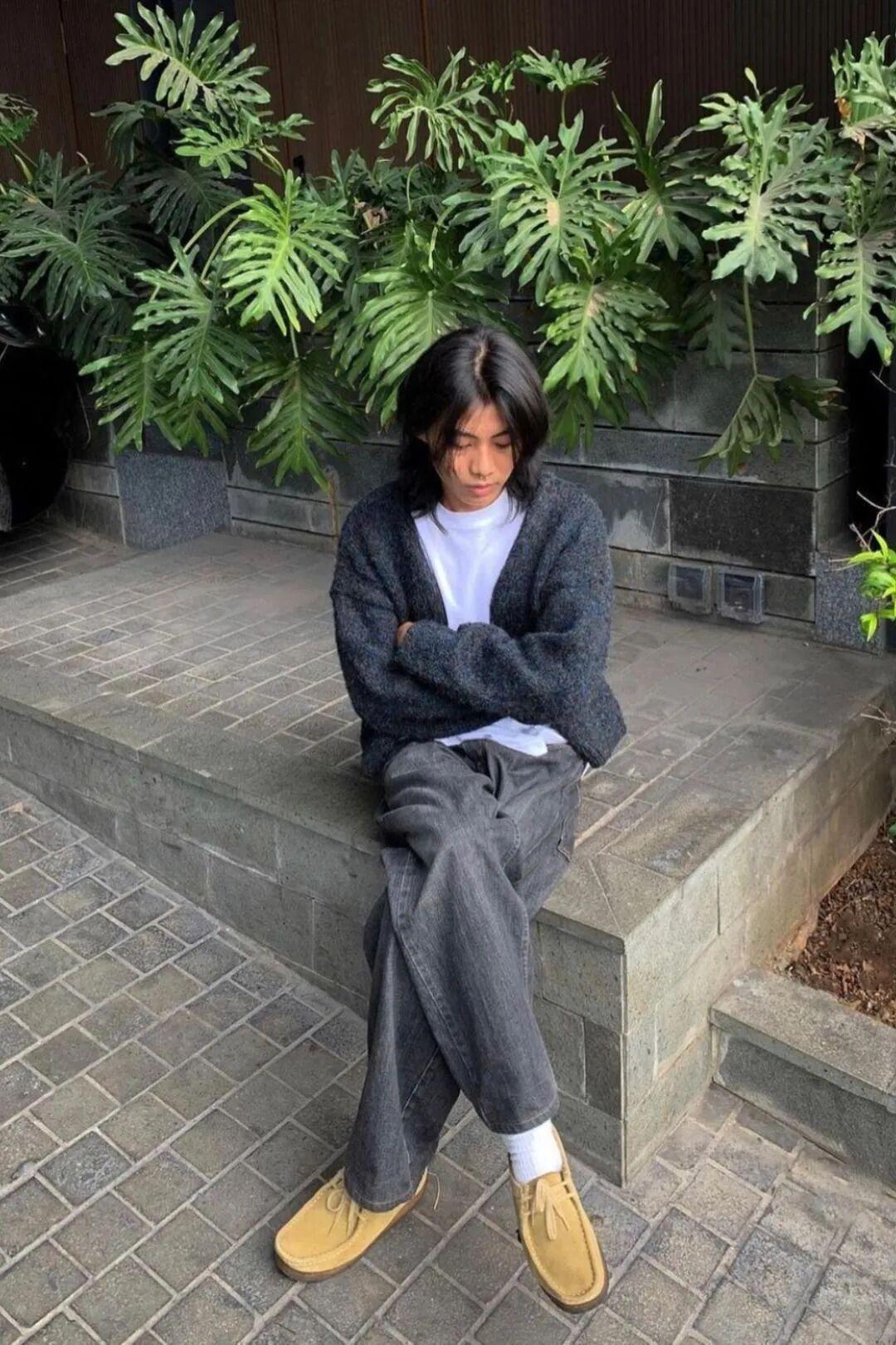 袋鼠鞋和今年超火的彎刀褲也很適配,不過彎刀褲更適合高個子,小個子如果想嘗試這個搭配可以穿短款外套來優化比例。▼