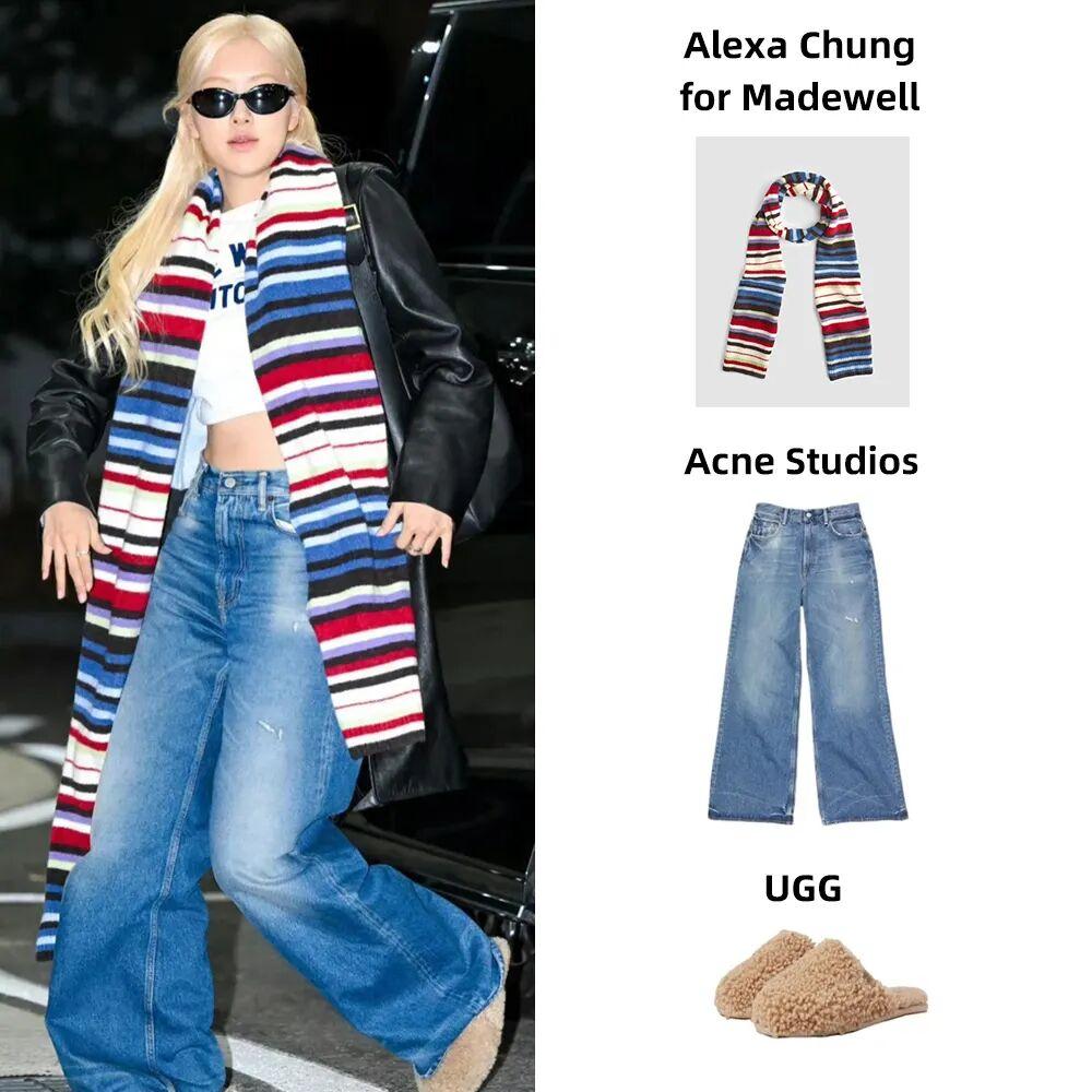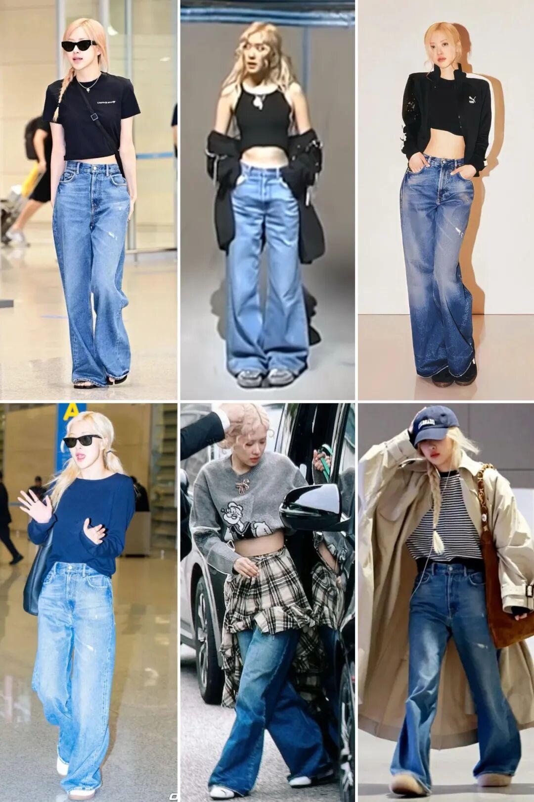 Rosé上週的機場穿搭又第一百零八次穿上了Acne Studios的這條闊腿牛仔褲。▼