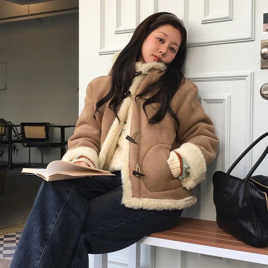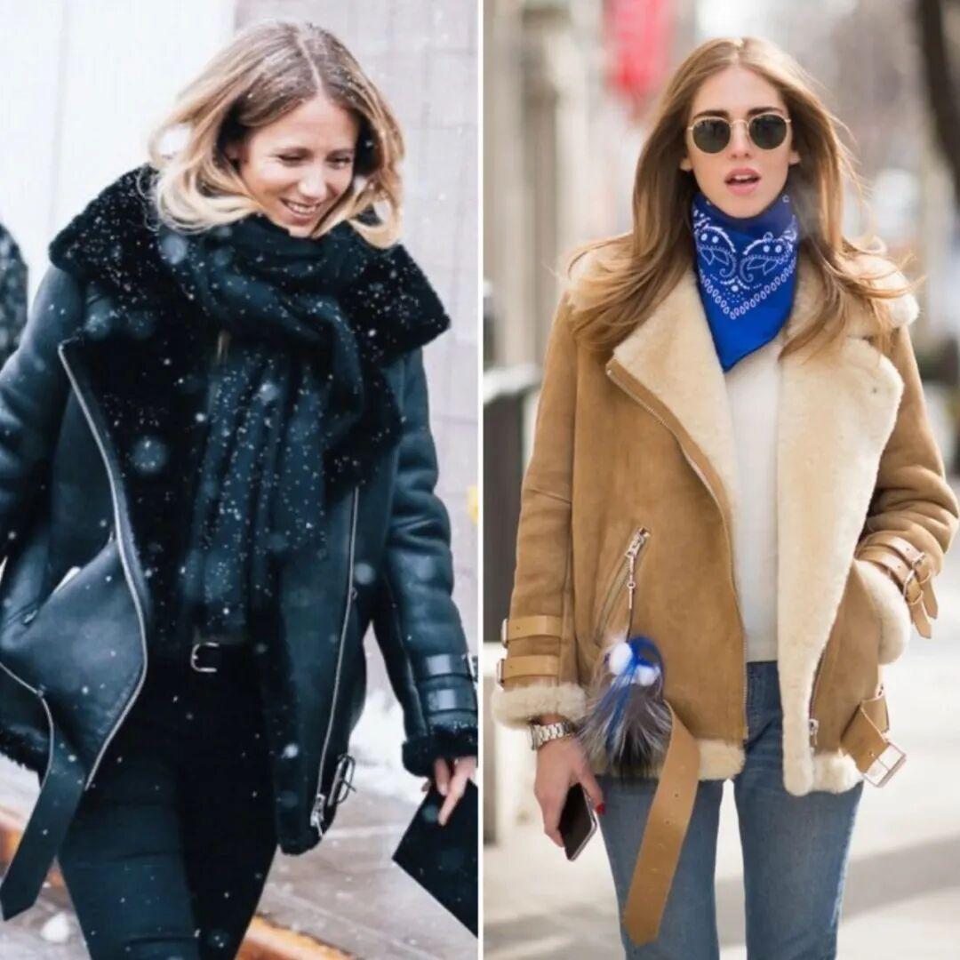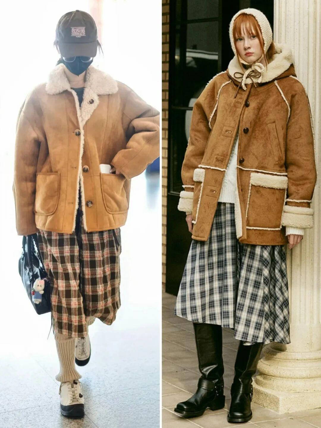 除了皮衣款,這種麂皮反絨的款式也很推薦,顏色大多是駝色、焦糖色,沒有一般皮毛一體夾克的硬朗感,更溫暖柔和、對亞洲人也很友好,缺點就是打理起來比較麻煩。▼