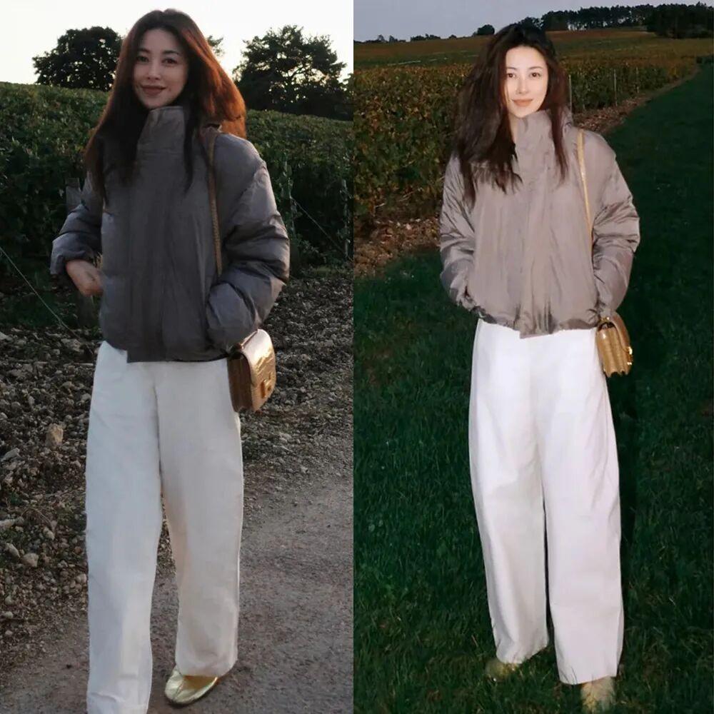倪妮穿的這種防水面料的空氣棉服還挺實穿,輕盈、耐髒、保暖,Lemaire、Studio Nicholson都推出過類似款式。▼