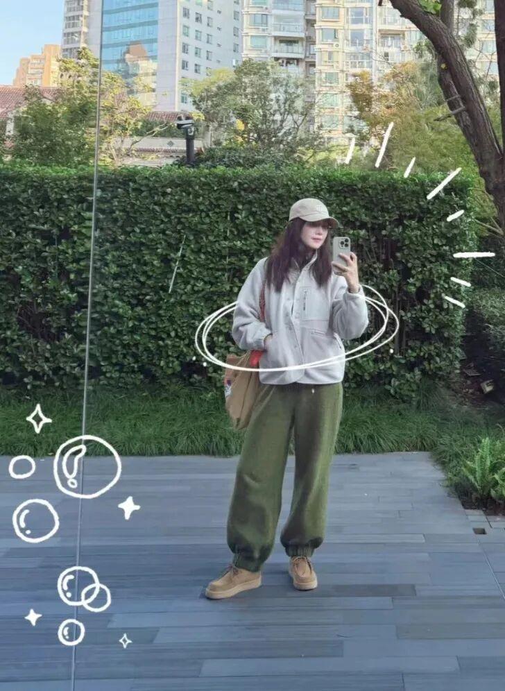這雙鞋子高圓圓去年就穿過,搭配衛衣褲一看就是特舒服的遛彎穿搭。▼