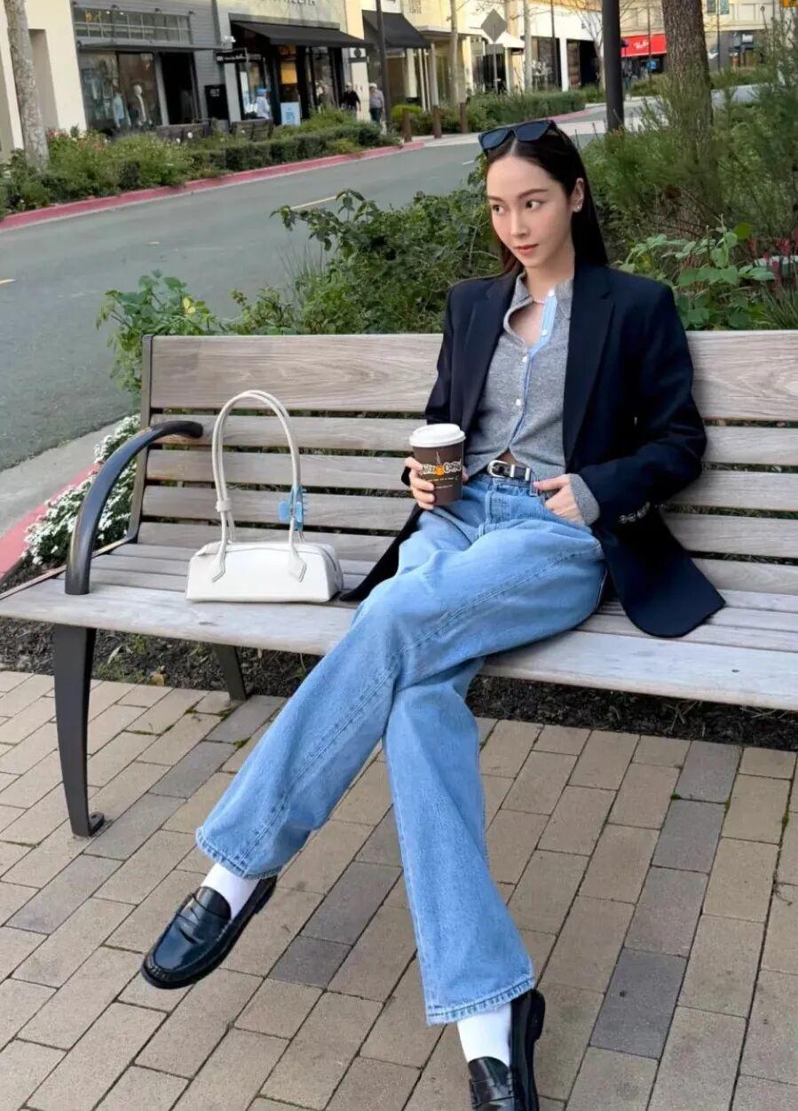 像鄭秀晶、鄭秀妍姐妹,私服大致路線都是美式老錢風穿搭,她們就很少會選過於甜美或花裏胡哨的款式,反覆買的就是樂福鞋、版型好的外套、基本款針織衫這些單品。▼
