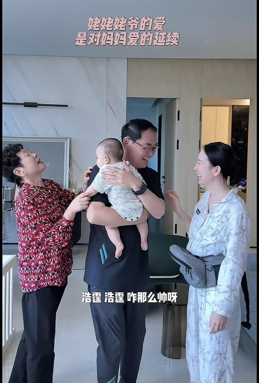 張檬的爸爸,看起來還是抱娃的新手,抱着外孫子有點小心翼翼的。沒有張檬媽媽那麼熟練,畢竟幾個月的孩子軟乎乎的,抱起來還真的是得十分謹慎。