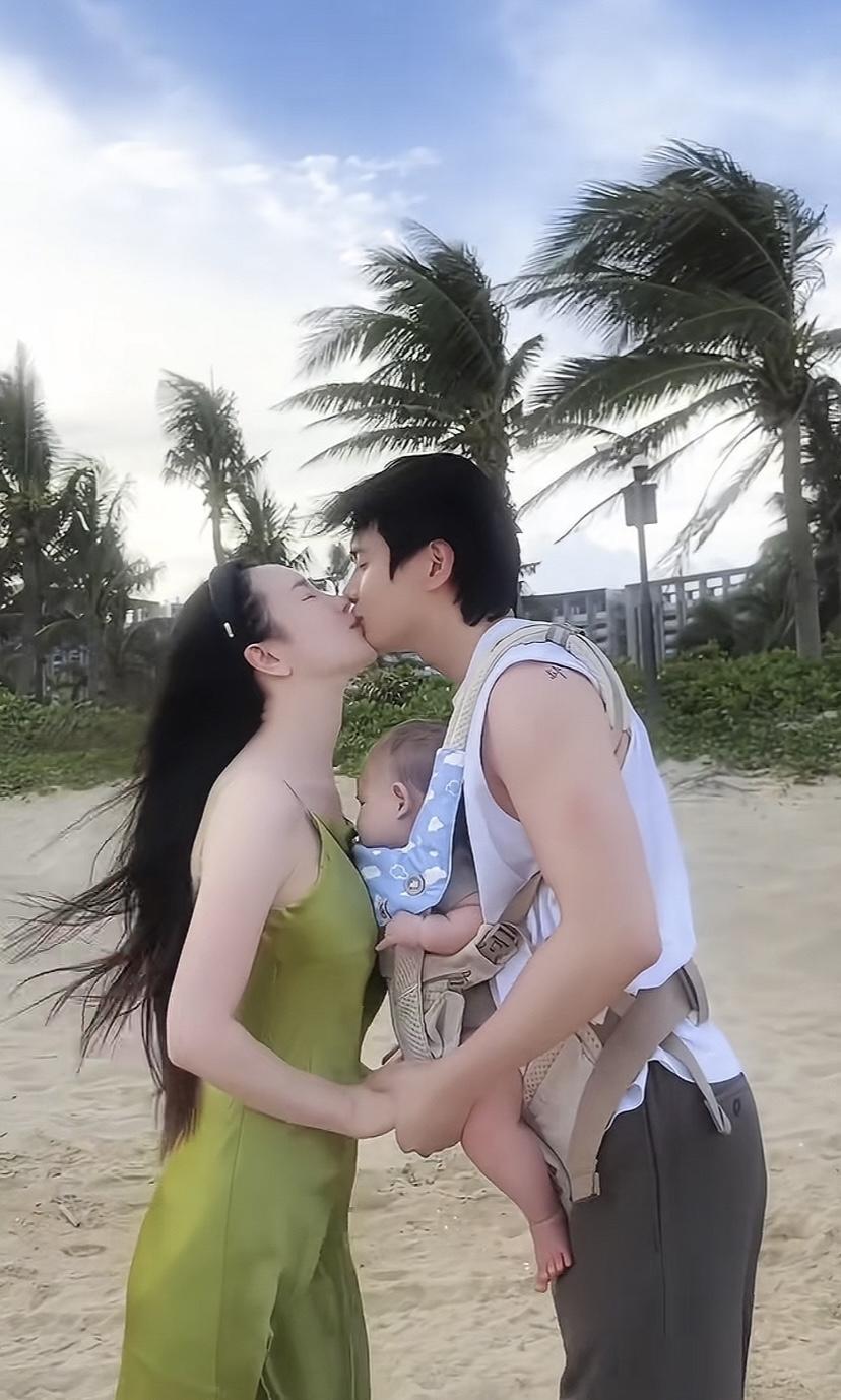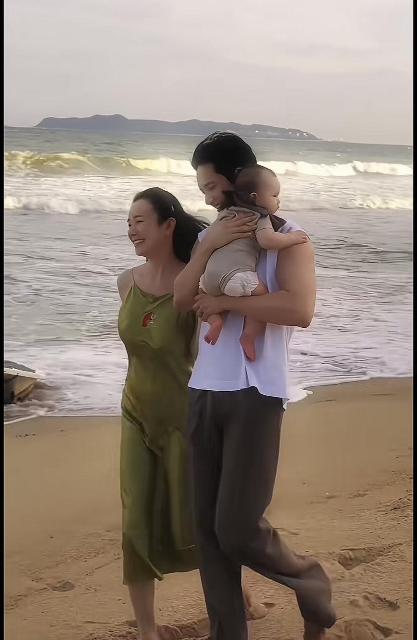 小五穿淺駝色雙排扣呢大衣,抱着8個月的兒子、面對張檬一臉笑意。他們的兒子頻繁出鏡,胖嘟嘟的很可愛。