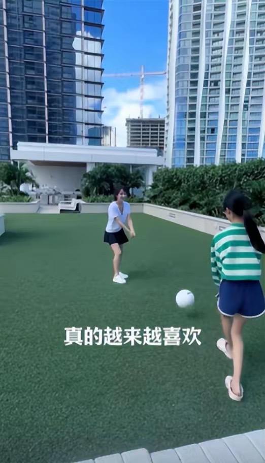 李念的女兒已經13歲了,她和媽媽經常一起運動、打球。小姑娘個子特別高,看着已經和媽媽165cm的身高差不多了,站在一起就像一對姐妹花。