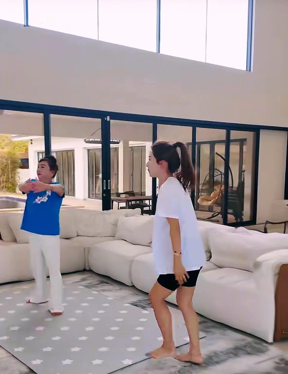 看起來李念媽媽身材保養的很好,是那種端莊富態的長相。她們在豪宅裏健身、跳舞,非常的快樂。