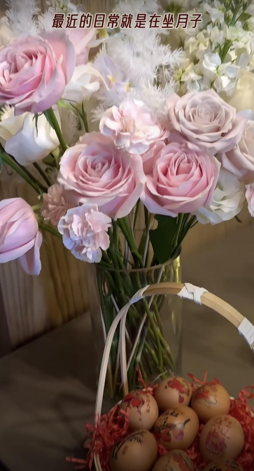 方媛最近的日常是在坐月子,她每一天都要保持好心情。因爲三胎有育兒嫂幫忙帶,自己就插花打發時間,家裏的鮮花被她擺的很好看,還有一筐可愛的紅雞蛋,讓人看着就很暖心。