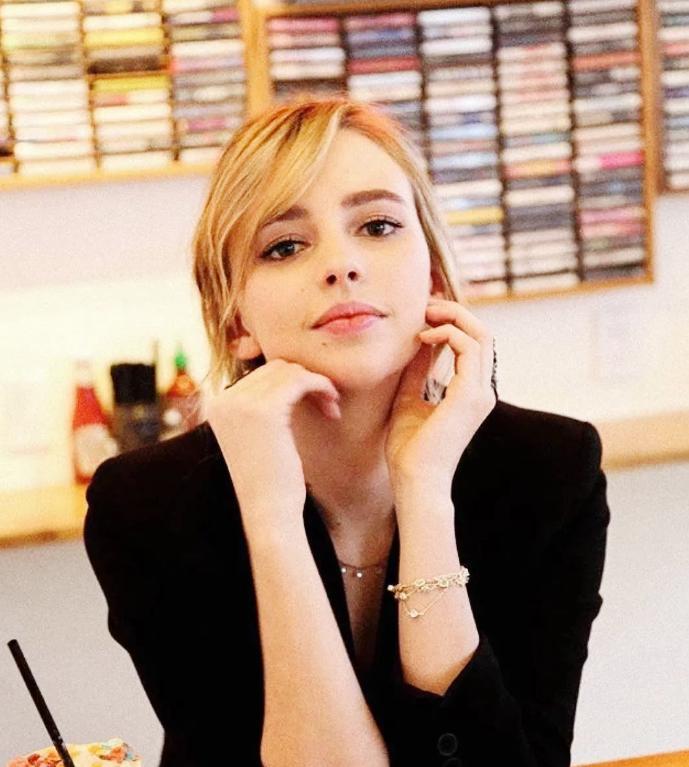 她有着細眉大眼的精緻五官,眼睛是深邃的深藍色,如同靜謐的海洋,透着智慧與堅定的光芒;牙齒潔白整齊,笑起來時給人溫暖親切的感覺;一頭捲髮自然垂落,增添了幾分靈動與優雅。