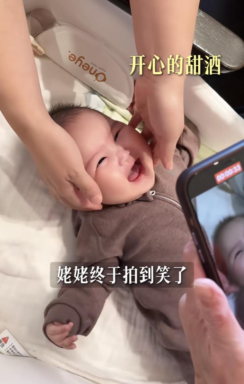 小甜酒開心的笑着,小肉臉特別可愛。她胖乎乎的,被養的很壯實。姥姥一直拿着手機拍照片,也終於拍到了甜酒的笑容。