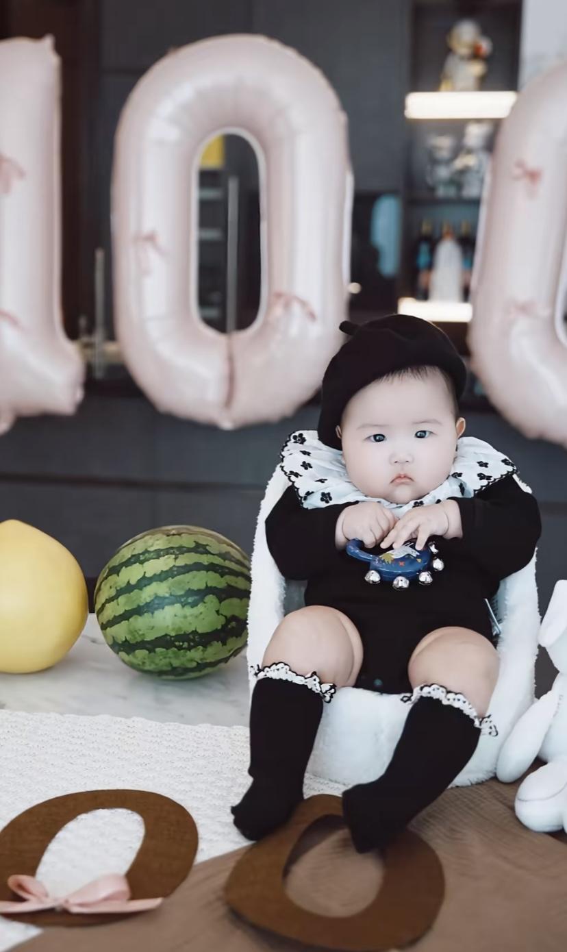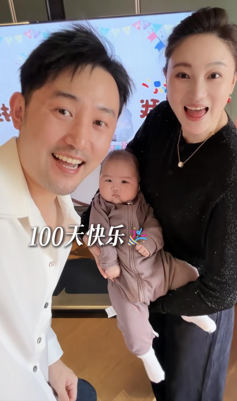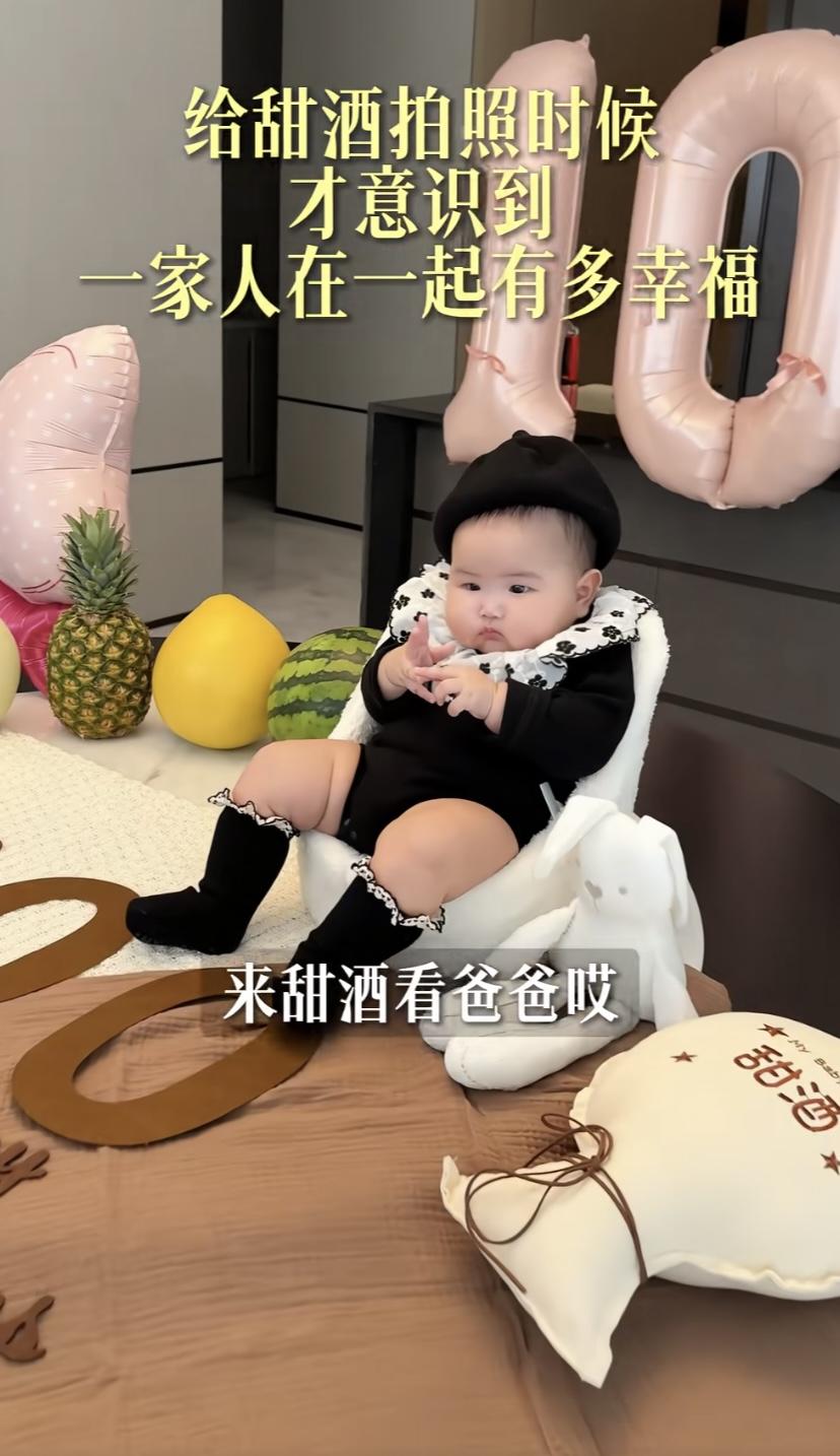在侯夢莎近期分享的視頻裏,他們給甜酒慶祝百天、一家人在一起很快樂。甜酒才3個月多,肉嘟嘟的裝的非常可愛。小傢伙穿着連體的衣服,跟着爸爸媽媽一起看鏡頭,眼睛很有神。