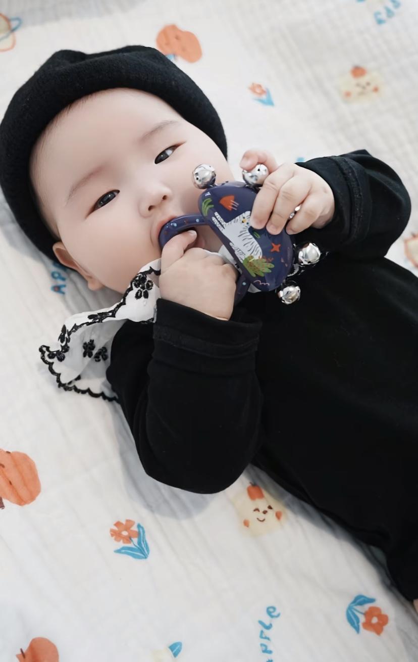 甜酒真的是好胖乎,大肉腿上好幾道褶子,連手腕的位置也一截一截的。才100天的寶寶,看着像多大的孩子一樣。