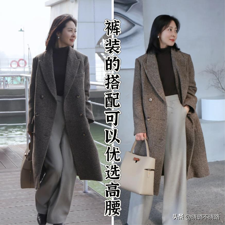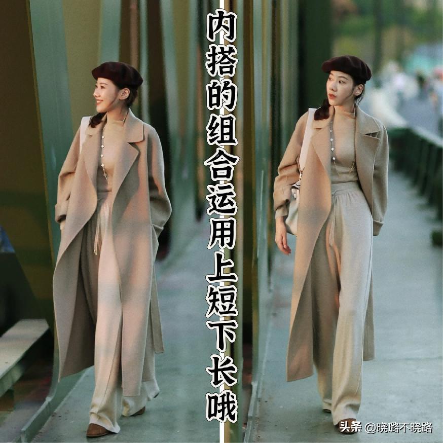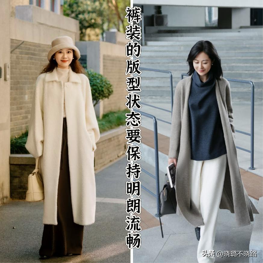 下半身比較粗壯或者是想要遮擋一些身材狀態上的不足,那麼我們在搭配大衣的時候,內搭的整體可以體現的更加具有對比效果,上半部分就可以選擇比較貼身或者是修身系列的羊毛衫以及奶奶衫,或者是襯衣這一類,那麼下半部分所選擇的褲裝就一定是寬鬆的設計,在線條的走向當中有着很明顯的對比效果。