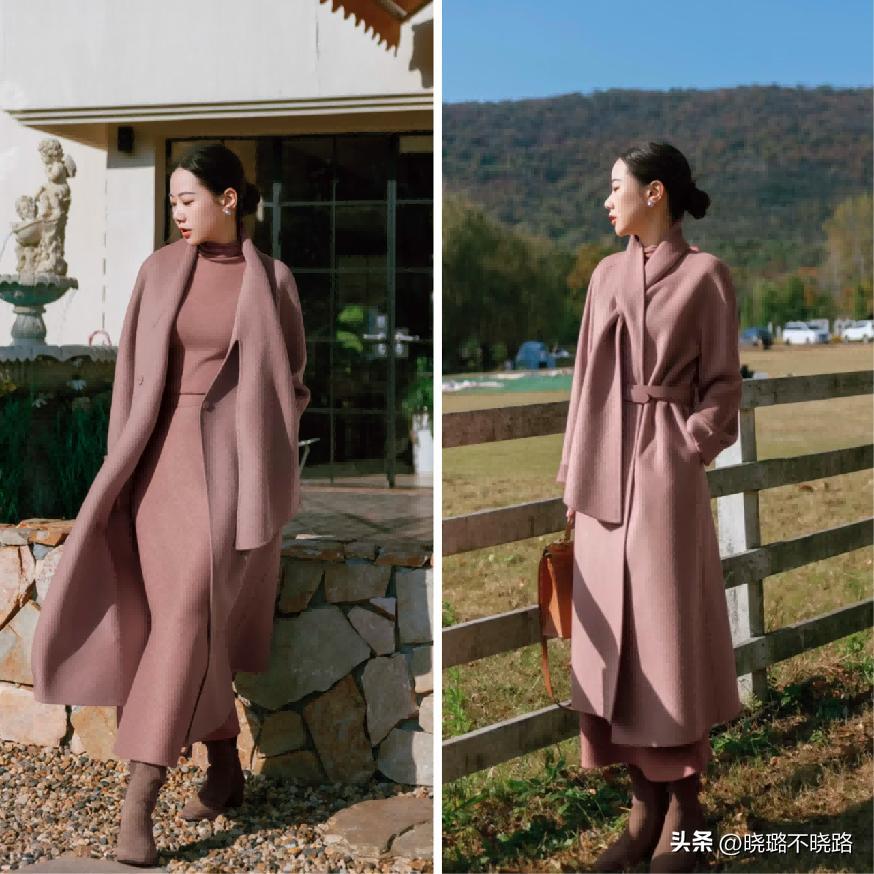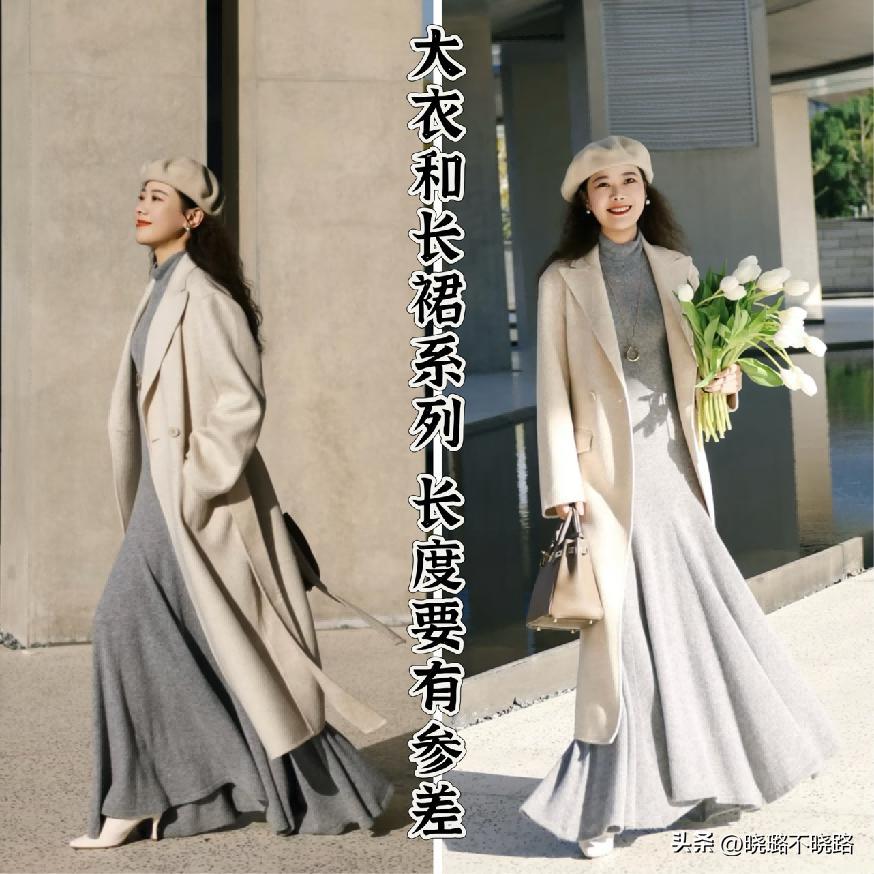 上面我們已經說過了,裙子的長度一定要在膝蓋以下的設計纔算是屬於很有優勢的版型,那麼長款的大衣也是差不多在膝蓋以下的位置,但一定要注意,你所搭配的外搭單品和你的裙裝長度一定不要一致,有所參差的話會體現的更加具有層次感。