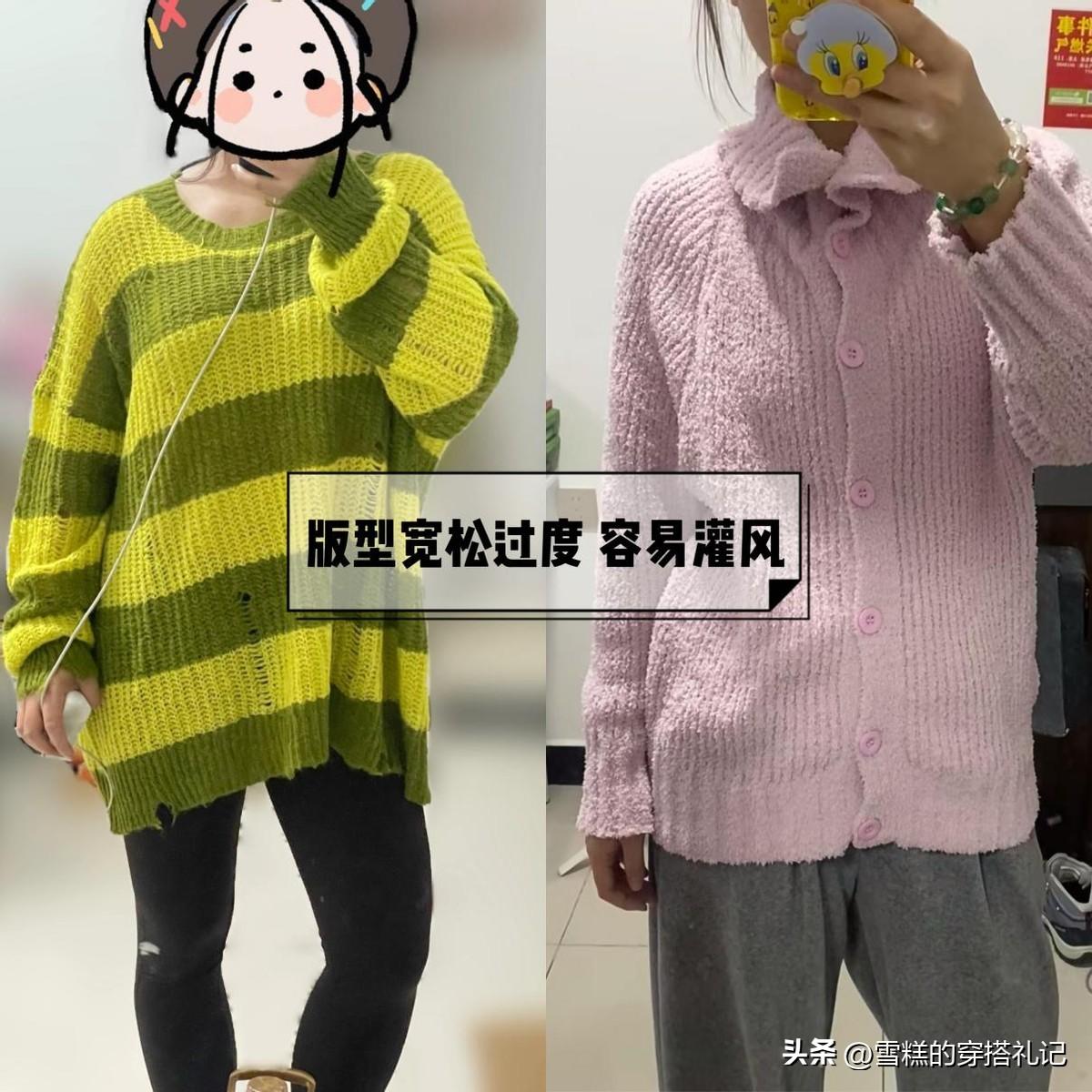 而且像這種太鬆垮的毛衣,就算是在裏面疊穿保暖衣,也很容易灌風,鬆垮的衣領、下襬、衣身,通通都了寒風更多機會,對於肩膀寬的大骨架姐妹來說,還容易顯壯。
