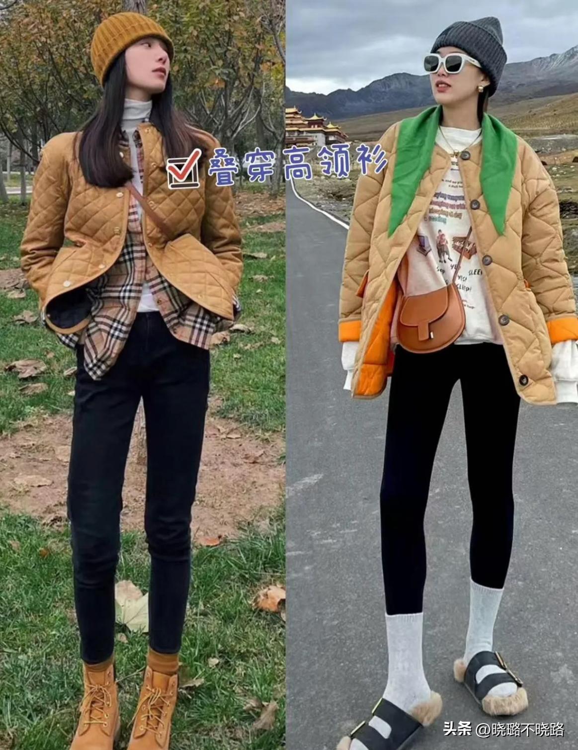 冬日穿搭要把保暖放在第一位,畢竟健康纔是王道,在棉服裏面,儘量不要疊穿太寬鬆的毛衣、衛衣或者加絨長袖,鬆鬆垮垮更容易灌風,不如換成修身款的輕薄打底衫,貼合肌膚更保暖,配合高領輕鬆禦寒。