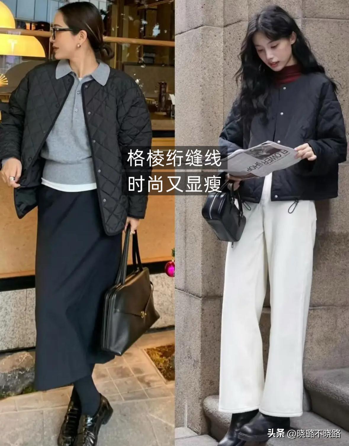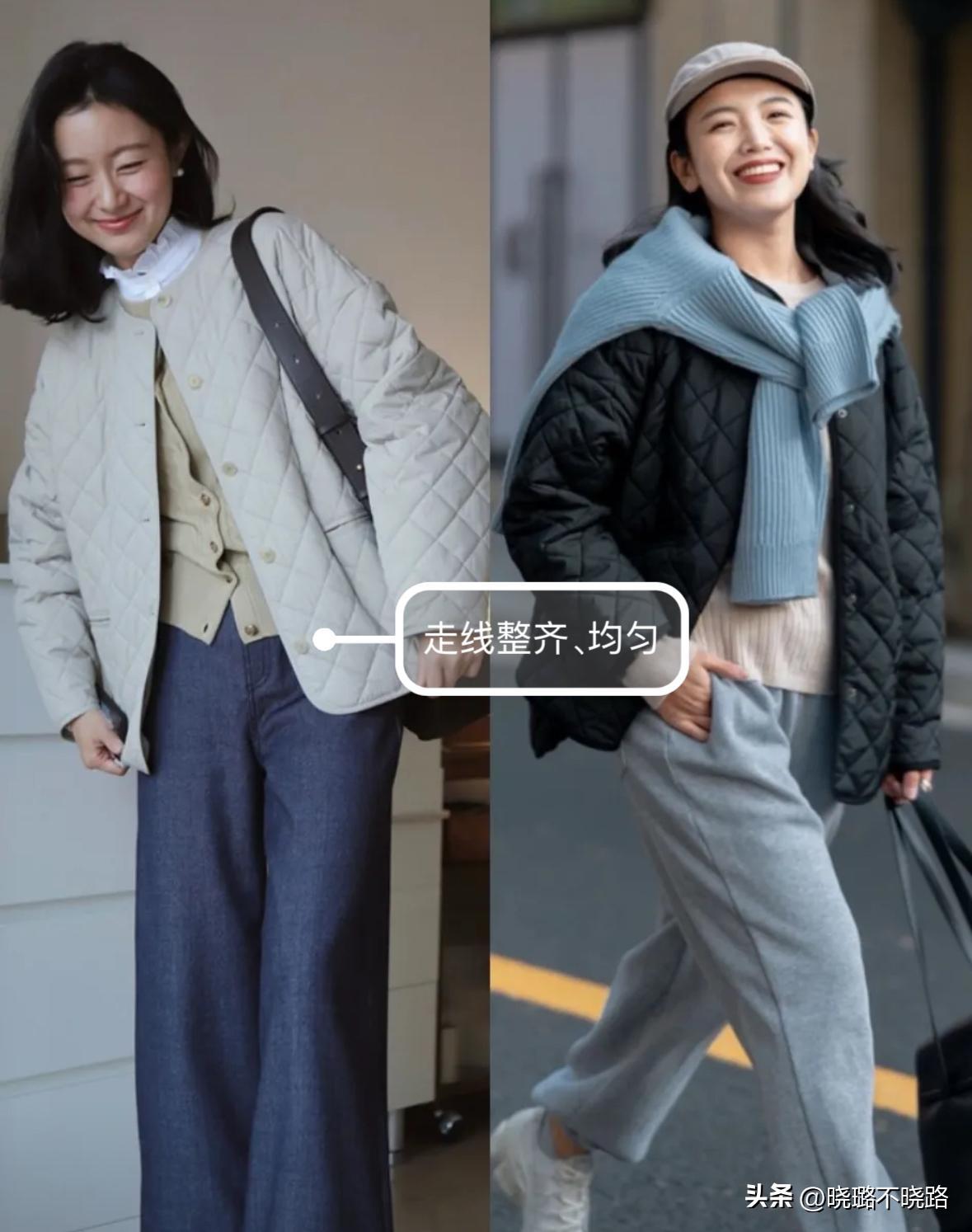 通過格棱絎縫線設計,將填充物固定在每一個小格子裏,不容易跑綿,而且還能增添立體度,自帶復古時髦感,可以輕鬆修飾身形,最關鍵的是沒有年齡限制。