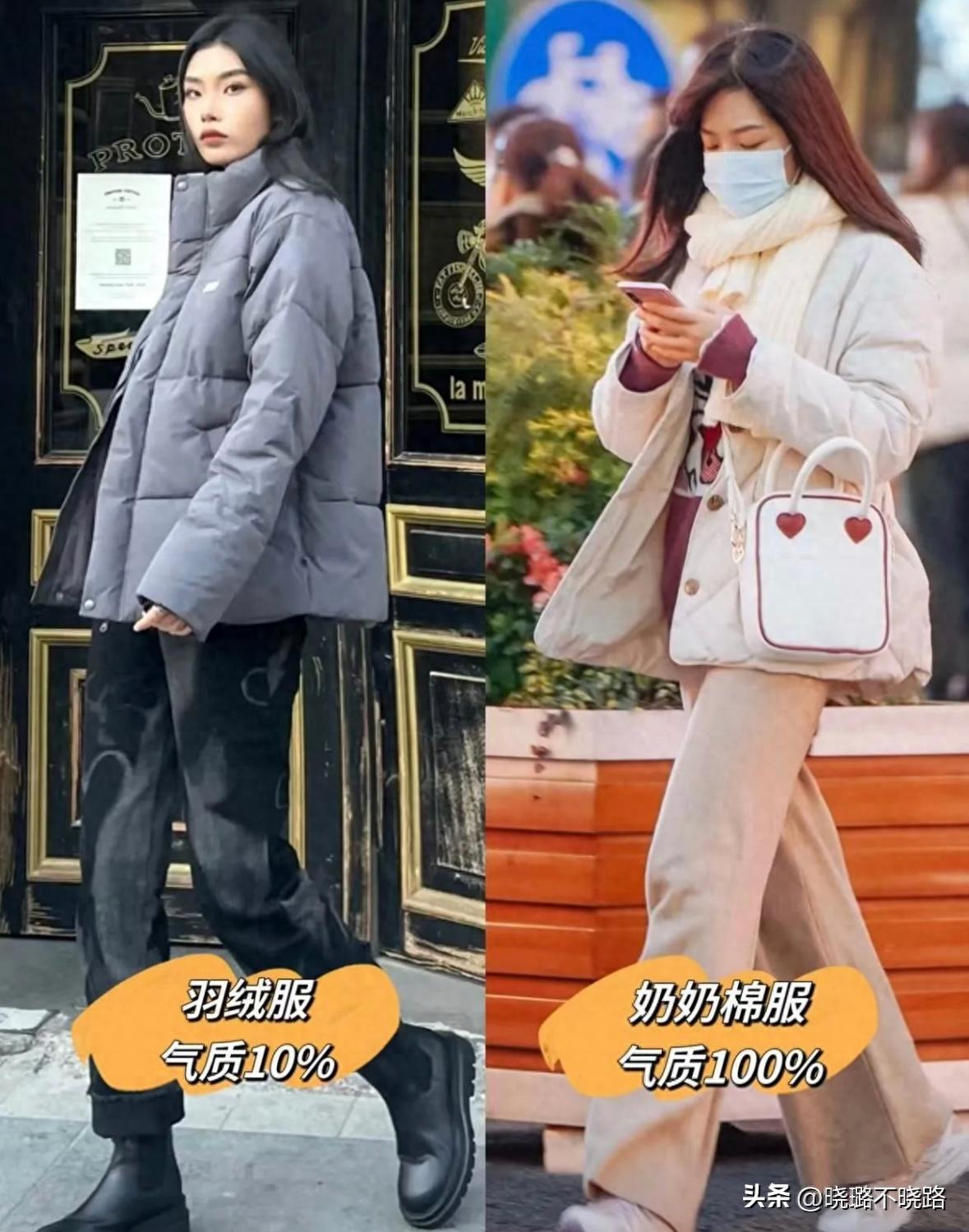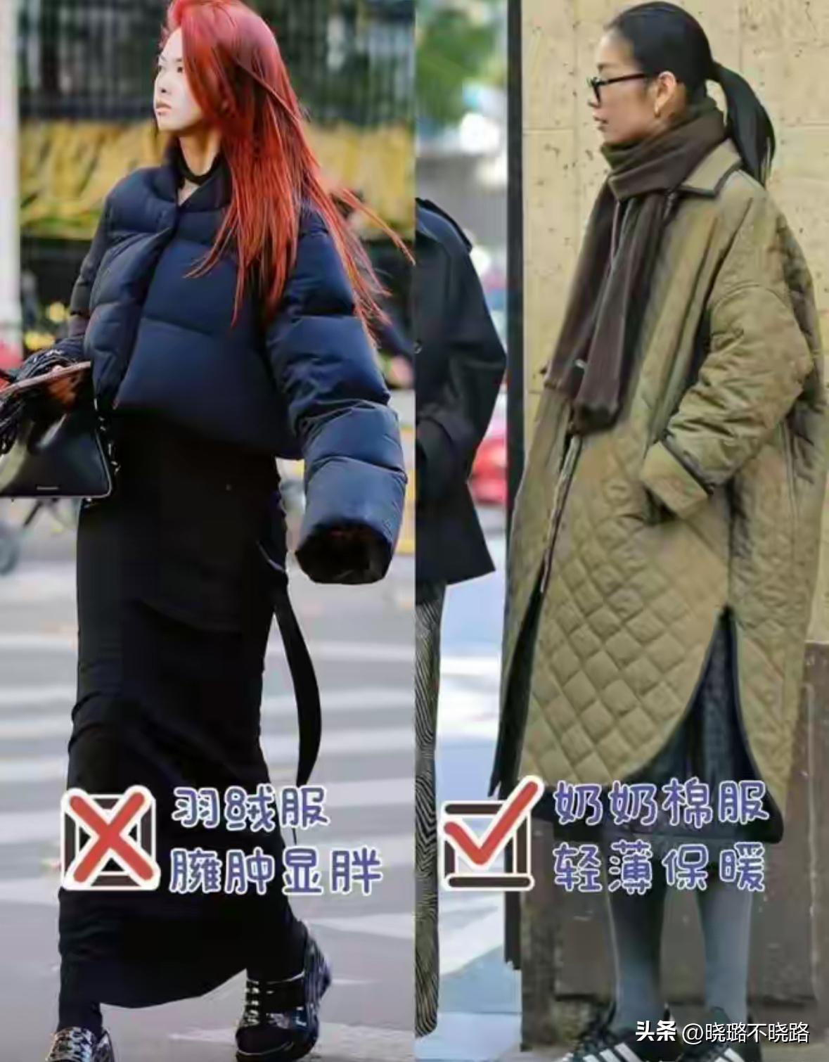 對比圖2.羽絨服臃腫顯胖VS棉服輕薄又保暖