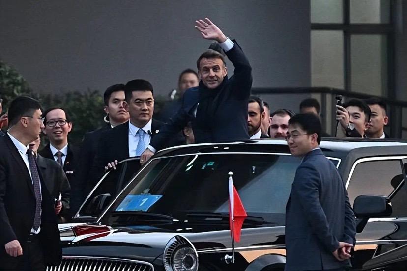 馬克龍熱情的訪華,還參觀了四川大學,在當地很受歡迎。他站在車上,和大家打招呼,感受到了市民們的熱情。
