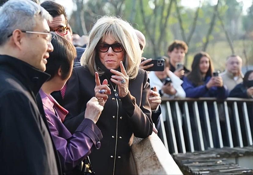 布里吉特也是非常受歡迎,當天參觀大熊貓的時候,身邊圍滿了遊客。能和法國第一夫人這麼近距離的接觸,也是一件幸事。