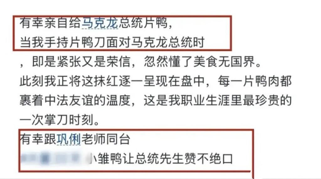 美食無國界,當手持片鴨刀將這抹紅逐一呈現在盤中時,既是緊張又是榮幸,每一片鴨肉都裹着中法友誼的溫度。