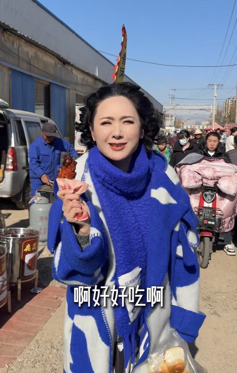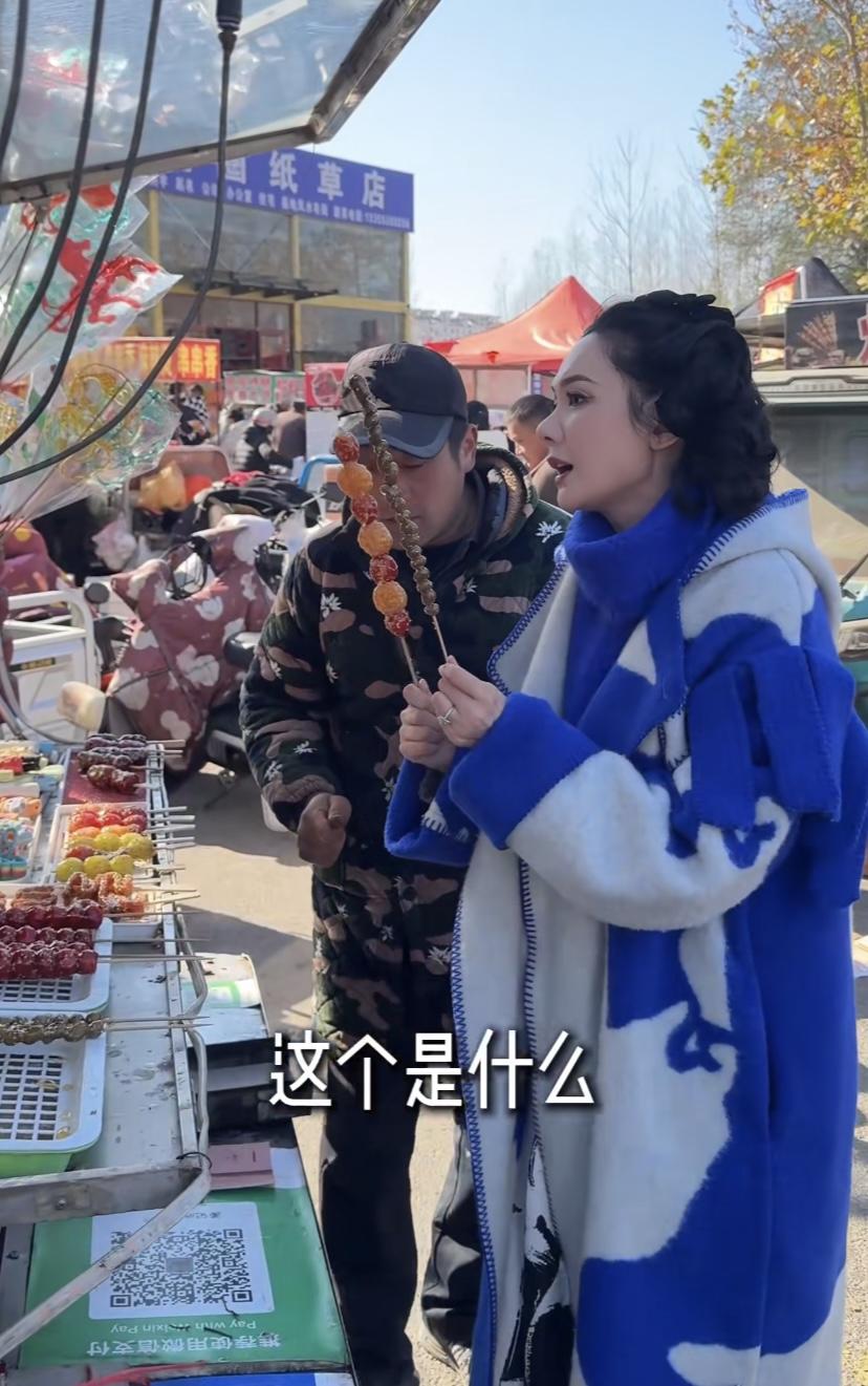 程莉莎趕山東大集,穿3萬大衣買3元糖葫蘆,像沒見過世面的城巴佬