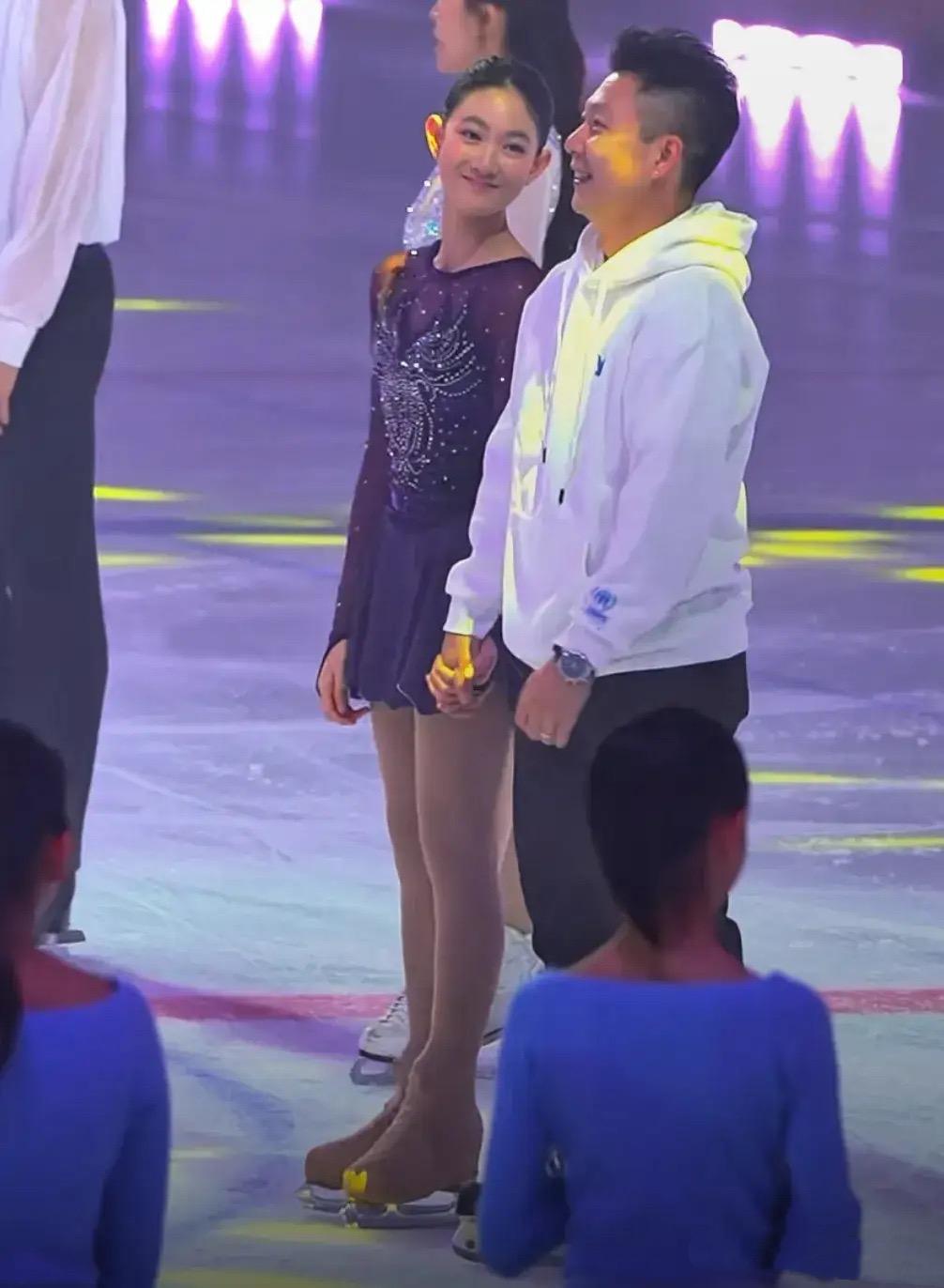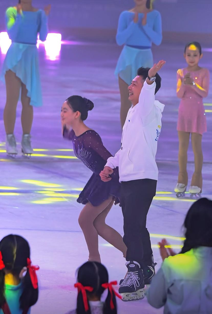 雖然李小鵬不是專業花滑選手,但是他練體操出身,基本的平衡感還是非常棒的,有女兒牽着他的手全程也很從容。