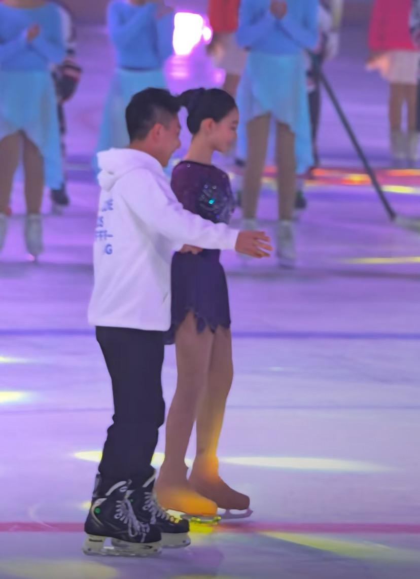 花滑對於李小鵬來講,並不是特別熟悉。雖然平日也會陪女兒練習,但是真正上臺還是有點緊張的,看得出來李小鵬四肢有點僵硬,一直都是女兒在照顧他,引導他。