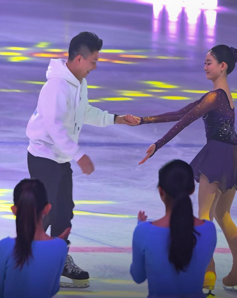 13歲奧莉帶李小鵬玩花滑,身高超160四肢纖細,氣質優雅像陶昕然