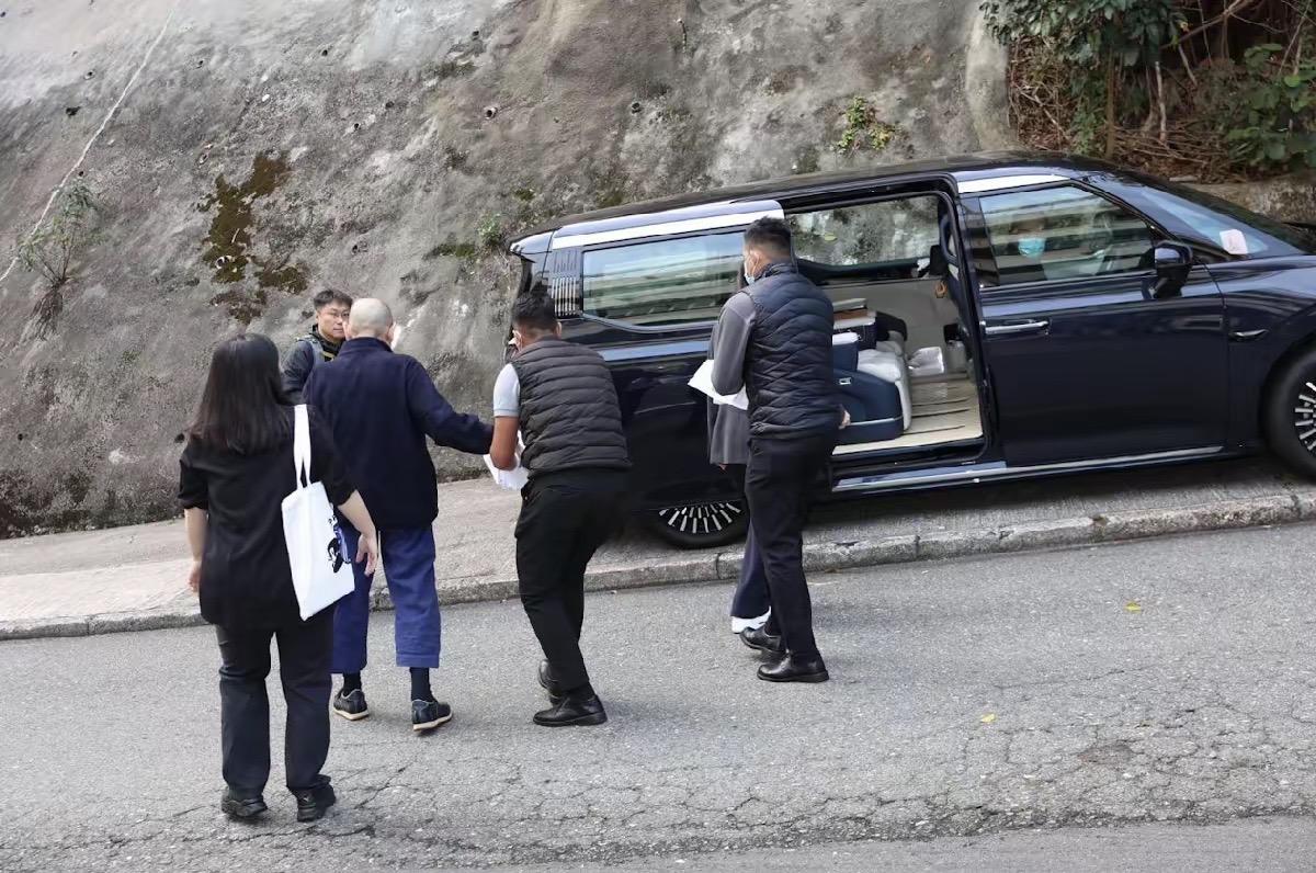 當天甘比和劉鑾雄乘坐豪車抵達,身邊帶了3男2女5位保鏢加生活助理。保鏢們都戴着口罩,劉鑾雄做過手術以後,身體免疫力比較差,身邊的接觸他的人都需要消毒,保鏢助理們也都得戴口罩。