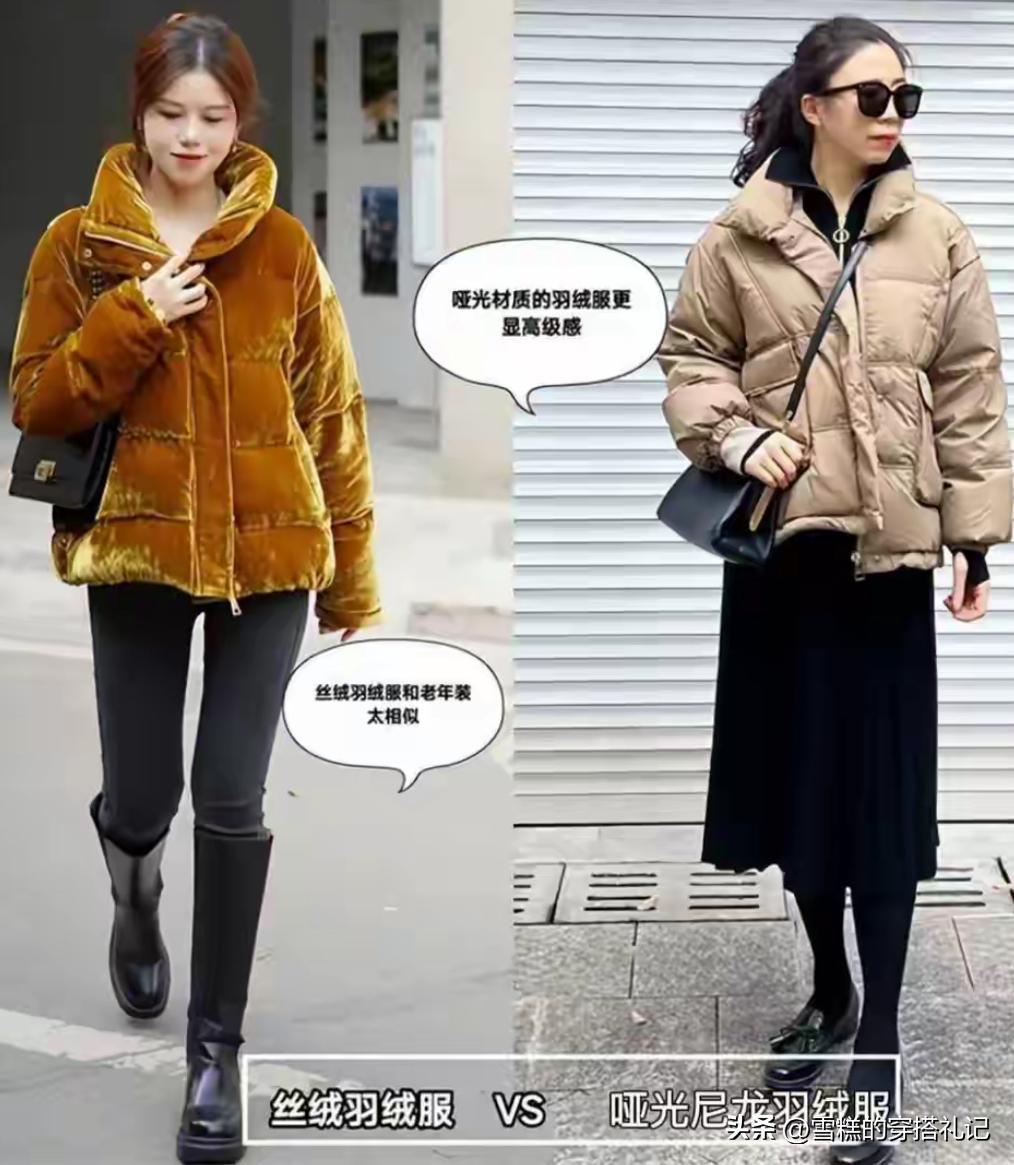 雷區3.絲絨羽絨服=老年裝,啞光材質很高級